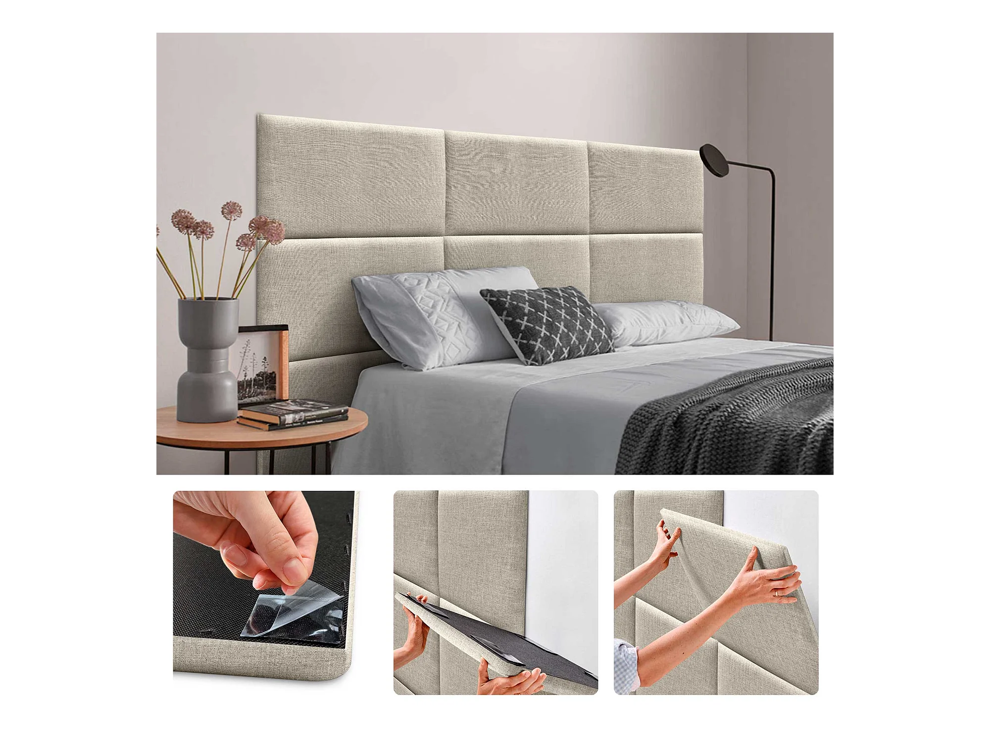 DHOME Set aus 1 mit Leinen gepolsterten selbstklebenden Paneel für Wände - Schallabsorbierend, Stoßschutz, Kopfteil-Dekoration (Beige, 60x40cm, X8)