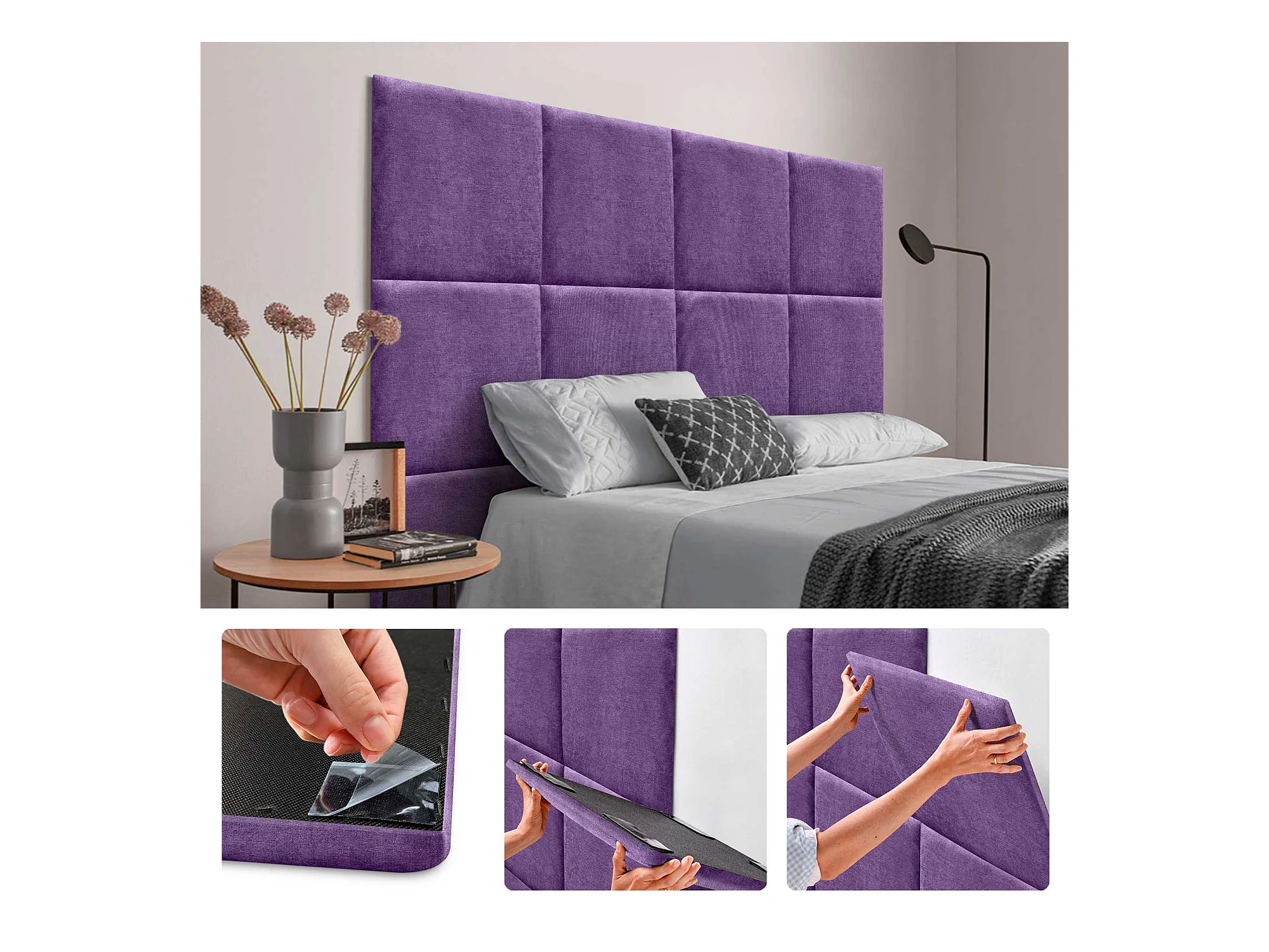 DHOME Set aus 1 selbstklebendem, gepolstertem Stoffpaneel für Wand, schallabsorbierend, Stoßschutz, Kopfteil (Lila, 50x50cm, x1)