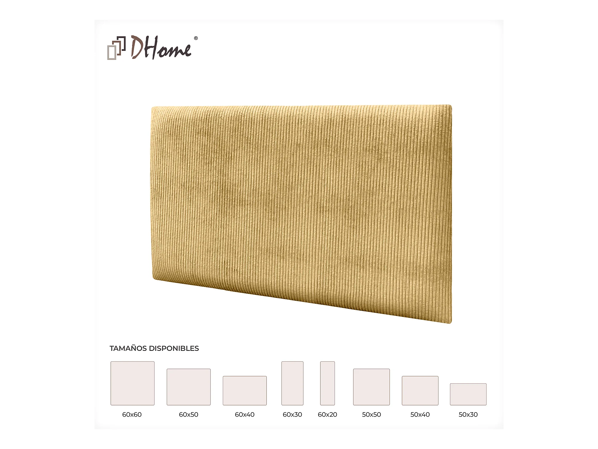 DHOME Set aus 6 gepolsterten Premium-Cord-Paneelen mit selbstklebender Rückseite für Wände – Akustisch absorbierend, Stoßschutz (Senfgelb, 60x50cm, x6)