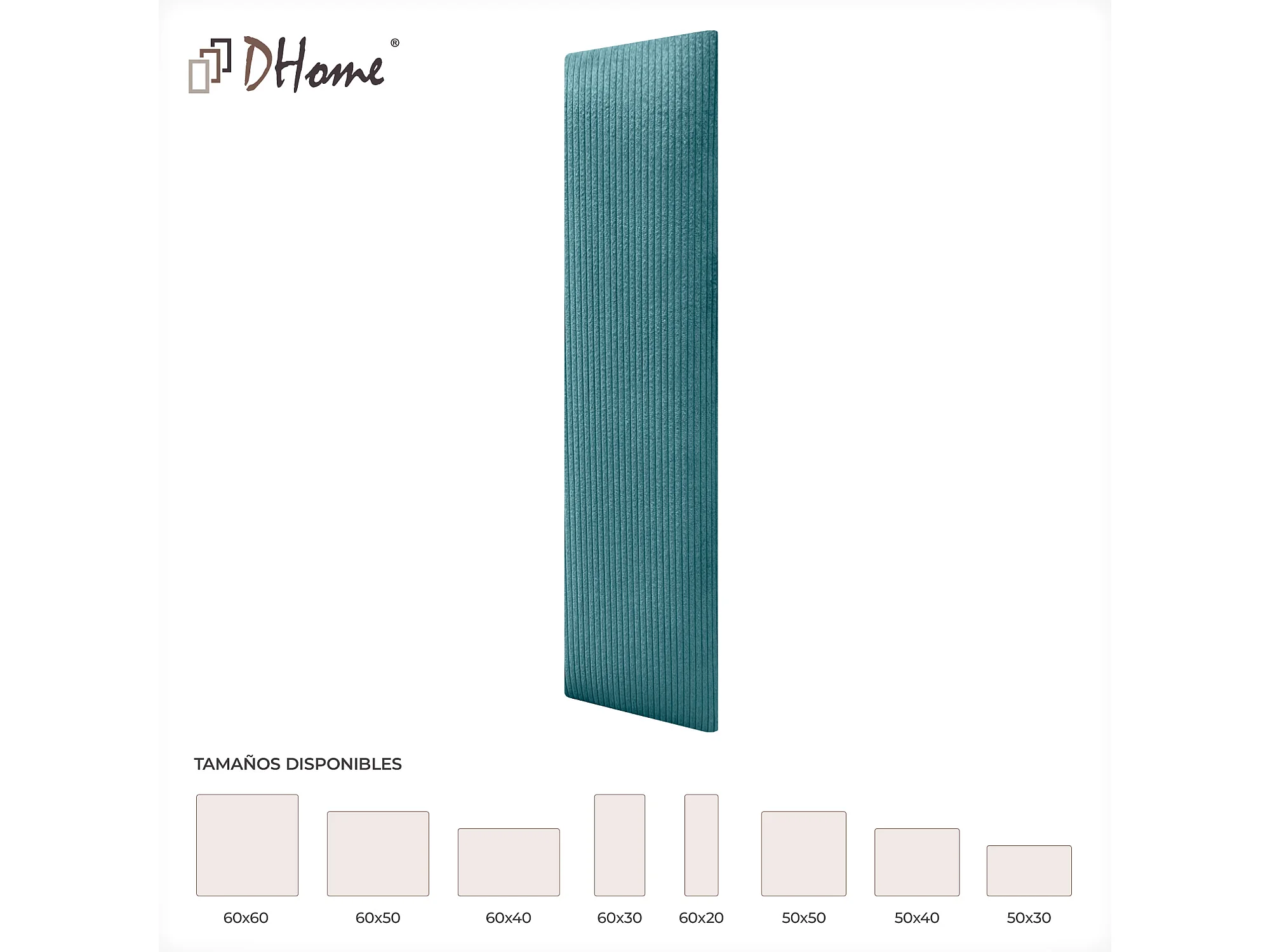 DHOME Set aus 6 gepolsterten Premium-Cord-Paneelen mit selbstklebender Rückseite für Wände – Akustisch absorbierend, Stoßschutz (Türkis, 60x20cm, x6)