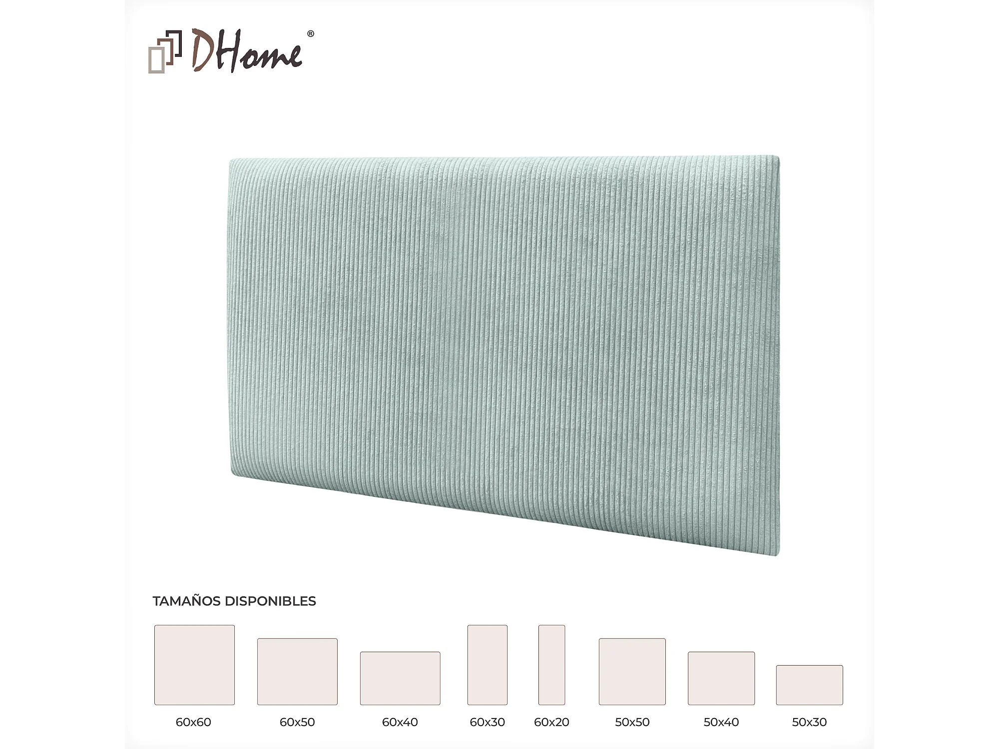 DHOME Set aus 6 gepolsterten Premium-Cord-Paneelen mit selbstklebender Rückseite für Wände – Akustisch absorbierend, Stoßschutz (Wassergrün, 50x30cm, x6)