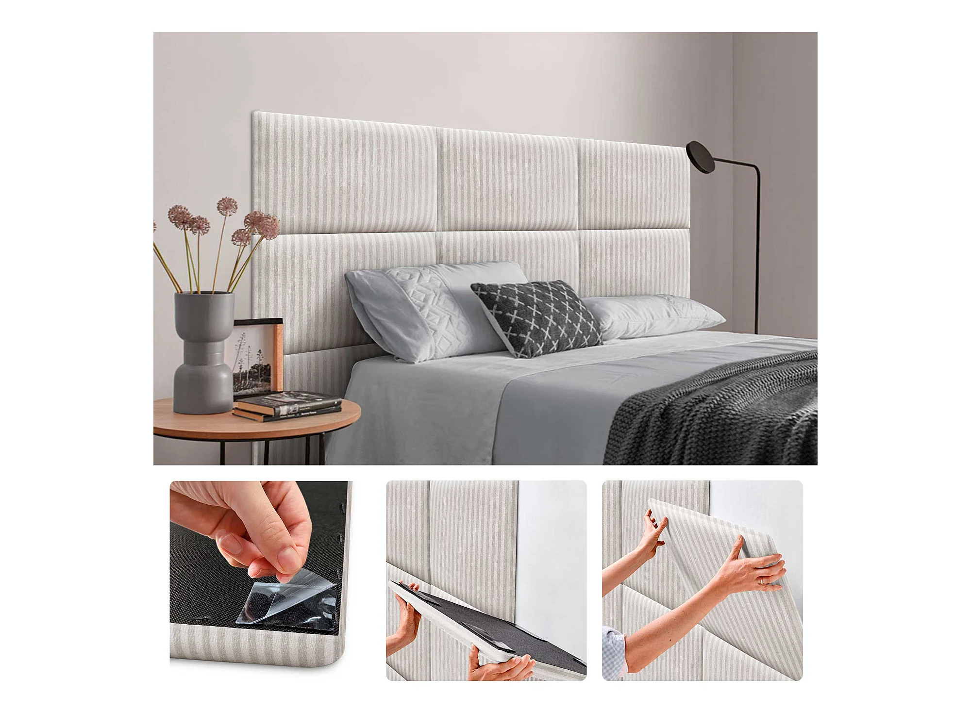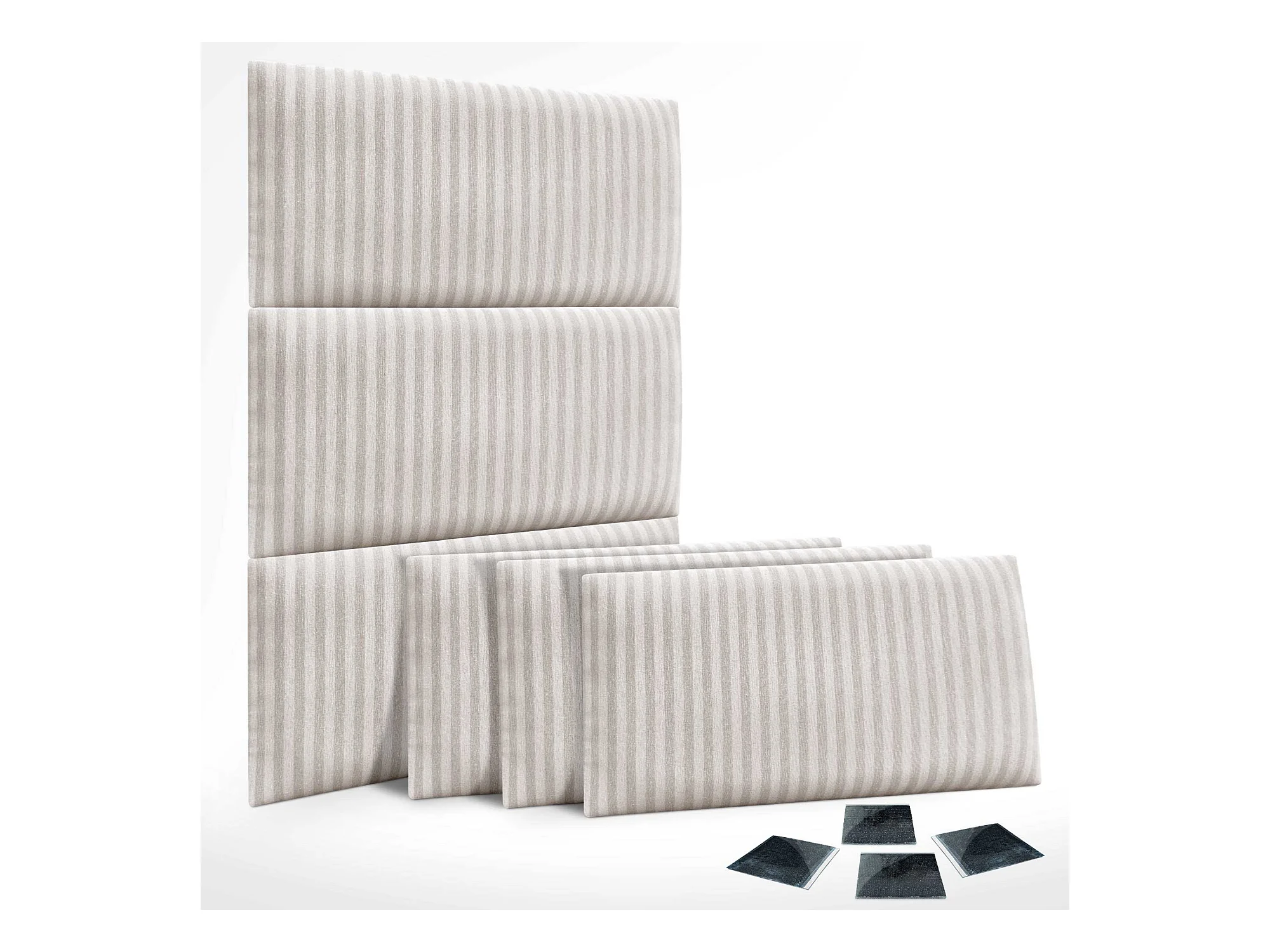 DHOME Set aus 6 luxuriös gepolsterte Paneele aus Stoff, Selbstklebende Akustik-Wandpaneele, schallabsorbierend, schützend (Cream, 60x50cm, x6)