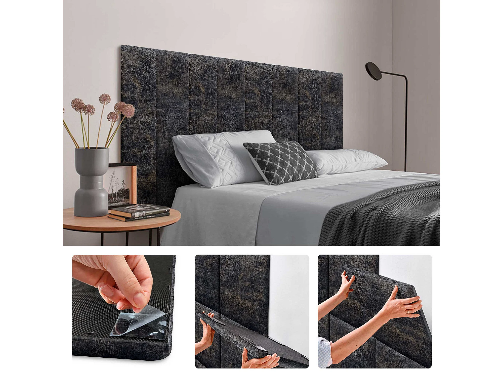 DHOME Set aus 6 luxuriös gepolsterte Paneele aus Stoff, Selbstklebende Akustik-Wandpaneele, schallabsorbierend, schützend (Luxurious Black, 60x20cm, x6)