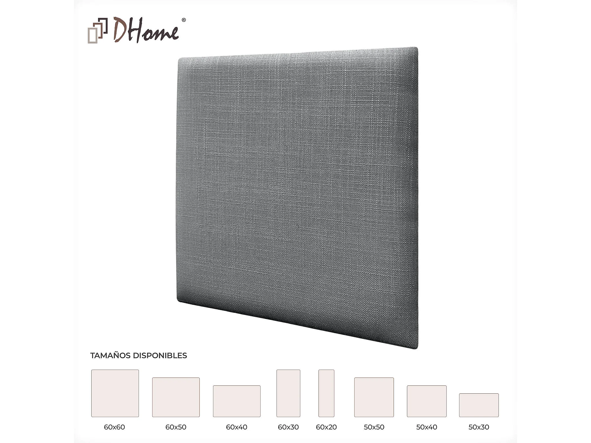 DHOME Set aus 6 mit Leinen gepolsterten selbstklebenden Paneelen für Wände - Schallabsorbierend, Stoßschutz, Kopfteil-Dekoration (Dunkelgrau, 50x50cm, x6)