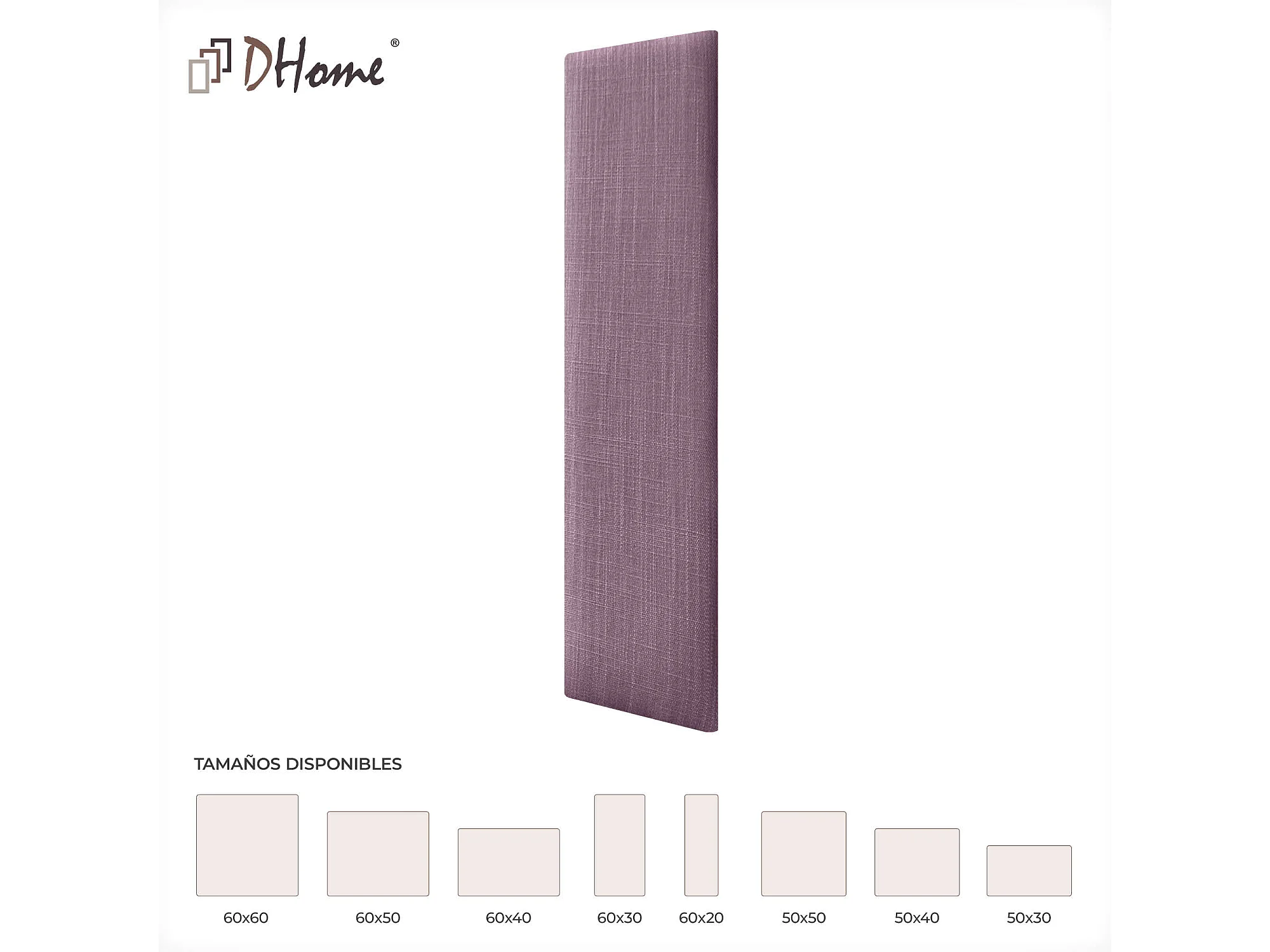 DHOME Set aus 6 mit Leinen gepolsterten selbstklebenden Paneelen für Wände - Schallabsorbierend, Stoßschutz, Kopfteil-Dekoration (Lila, 60x20cm, x6)