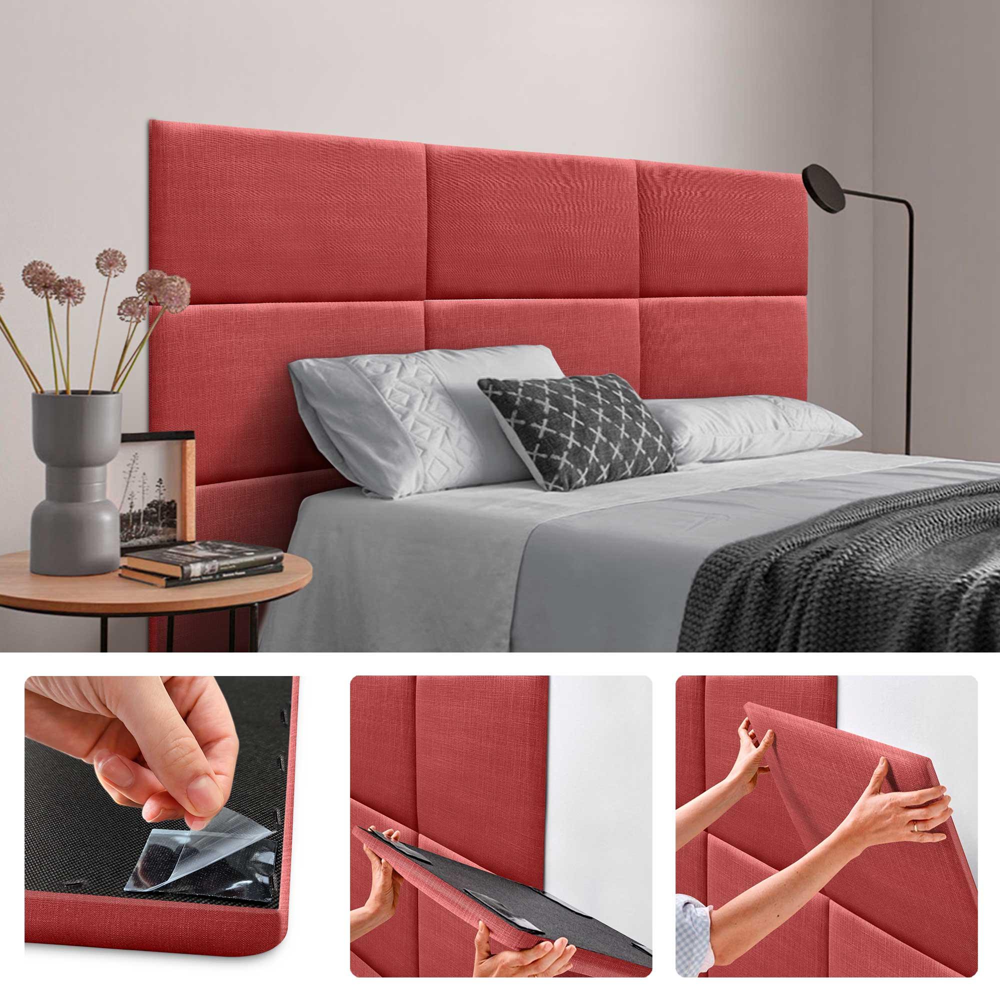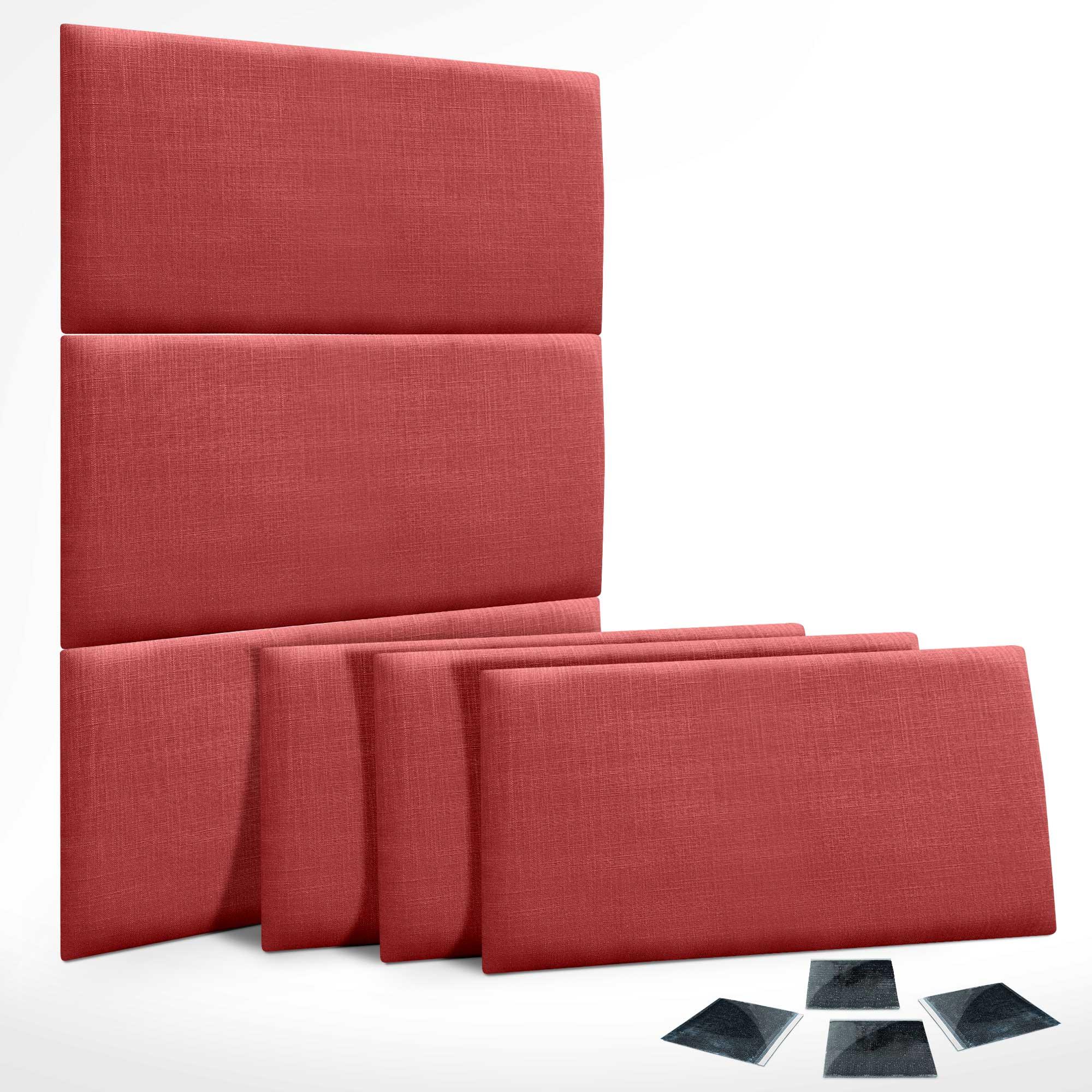 DHOME Set aus 6 mit Leinen gepolsterten selbstklebenden Paneelen für Wände - Schallabsorbierend, Stoßschutz, Kopfteil-Dekoration (Rot, 60x40cm, x6)