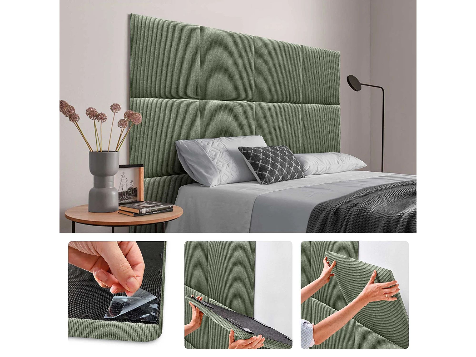 DHOME Set aus 8 gepolsterten Premium-Cord-Paneelen mit selbstklebender Rückseite für Wände – Akustisch absorbierend, Stoßschutz (Dschungelgrün, 50x50cm, x8)