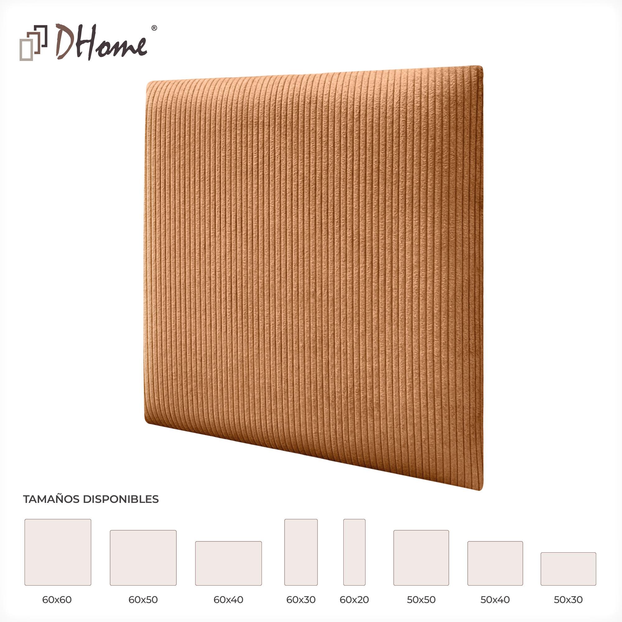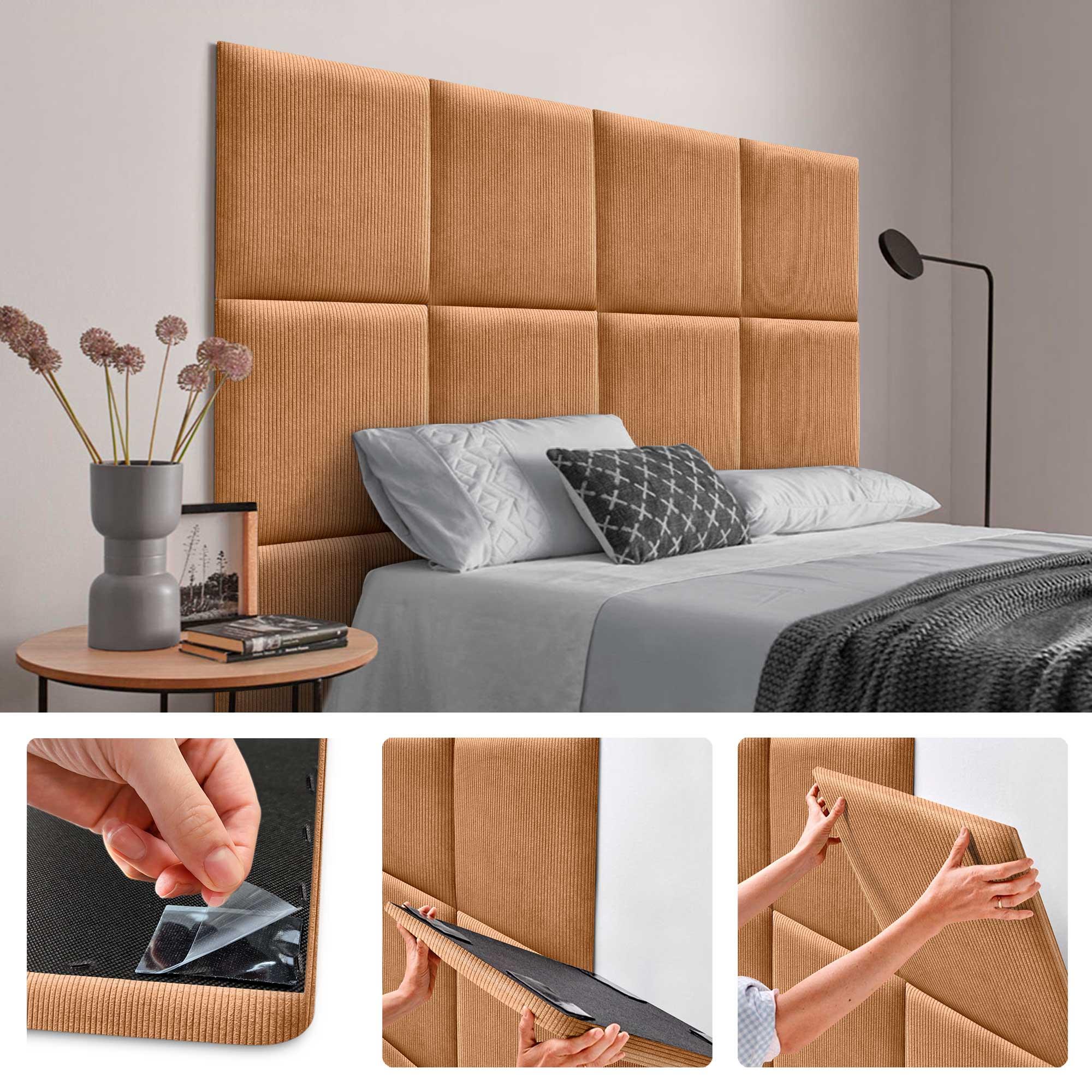 DHOME Set aus 8 gepolsterten Premium-Cord-Paneelen mit selbstklebender Rückseite für Wände – Akustisch absorbierend, Stoßschutz (Orange, 60x60cm, x8)