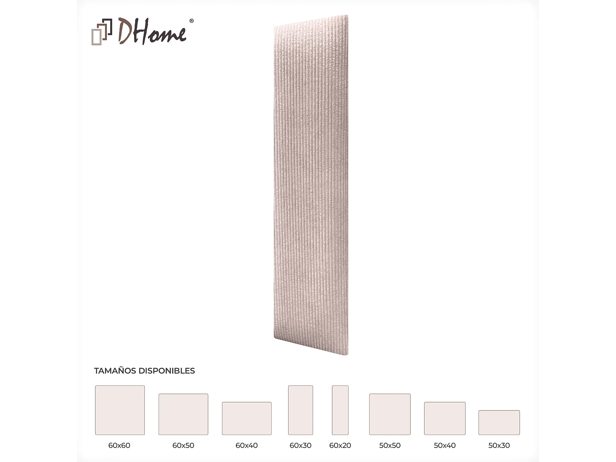 DHOME Set aus 8 gepolsterten Premium-Cord-Paneelen mit selbstklebender Rückseite für Wände – Akustisch absorbierend, Stoßschutz (Rosa Palo, 60x20cm, x8)