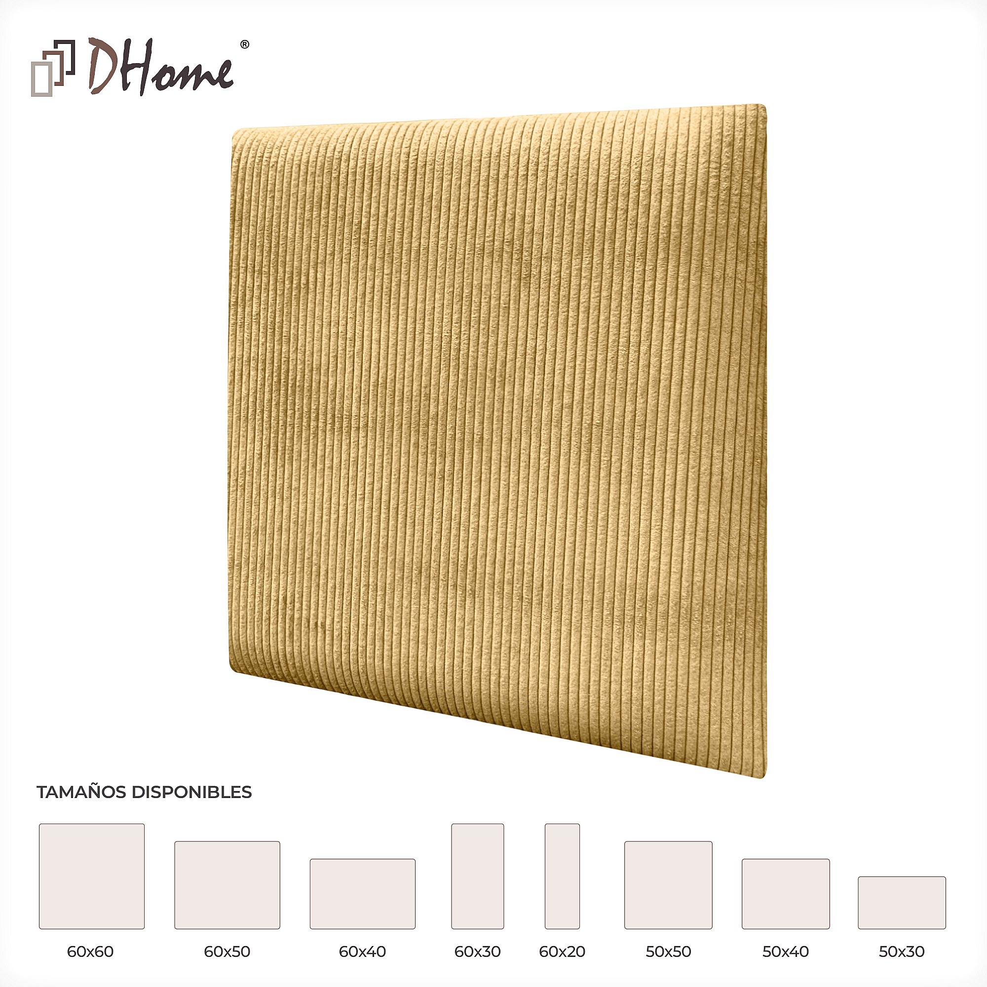 DHOME Set aus 8 gepolsterten Premium-Cord-Paneelen mit selbstklebender Rückseite für Wände – Akustisch absorbierend, Stoßschutz (Senfgelb, 50x50cm, x8)