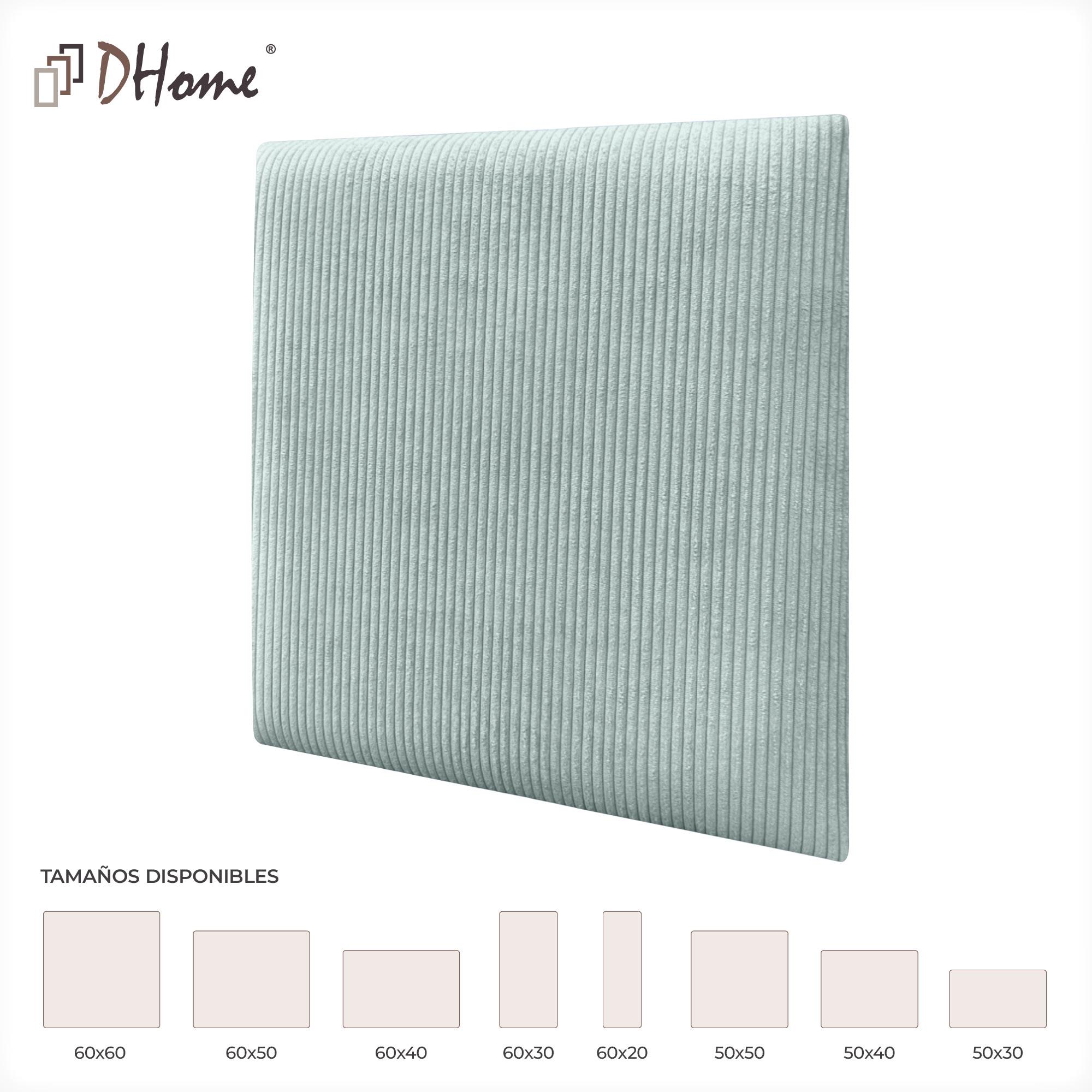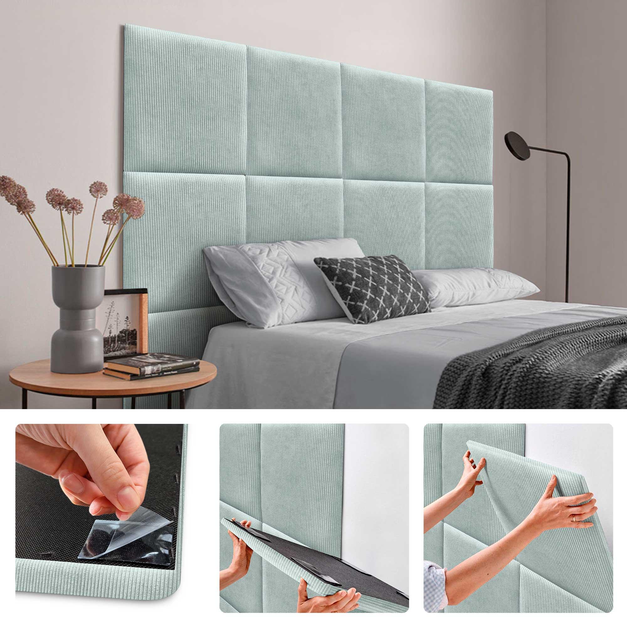 DHOME Set aus 8 gepolsterten Premium-Cord-Paneelen mit selbstklebender Rückseite für Wände – Akustisch absorbierend, Stoßschutz (Wassergrün, 50x50cm, x8)