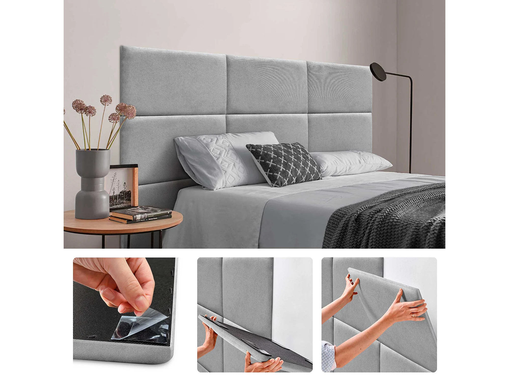 DHOME Set aus 8 Selbstklebende, gepolsterte Stoffpaneele für Wand, schallabsorbierend, stoßfest, Kopfteil (Grau, 60x50cm, x8)