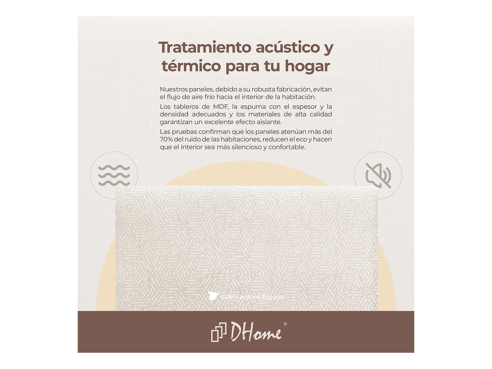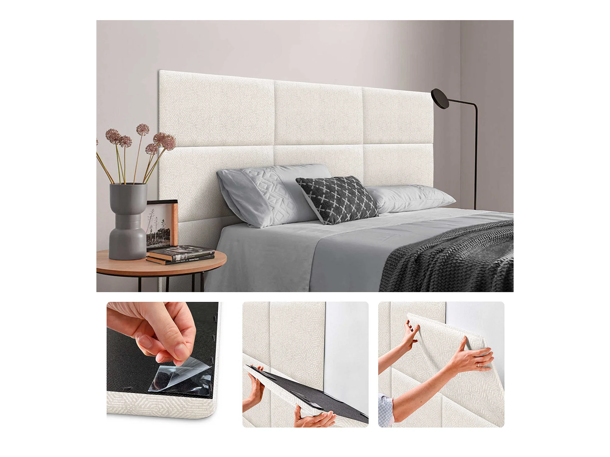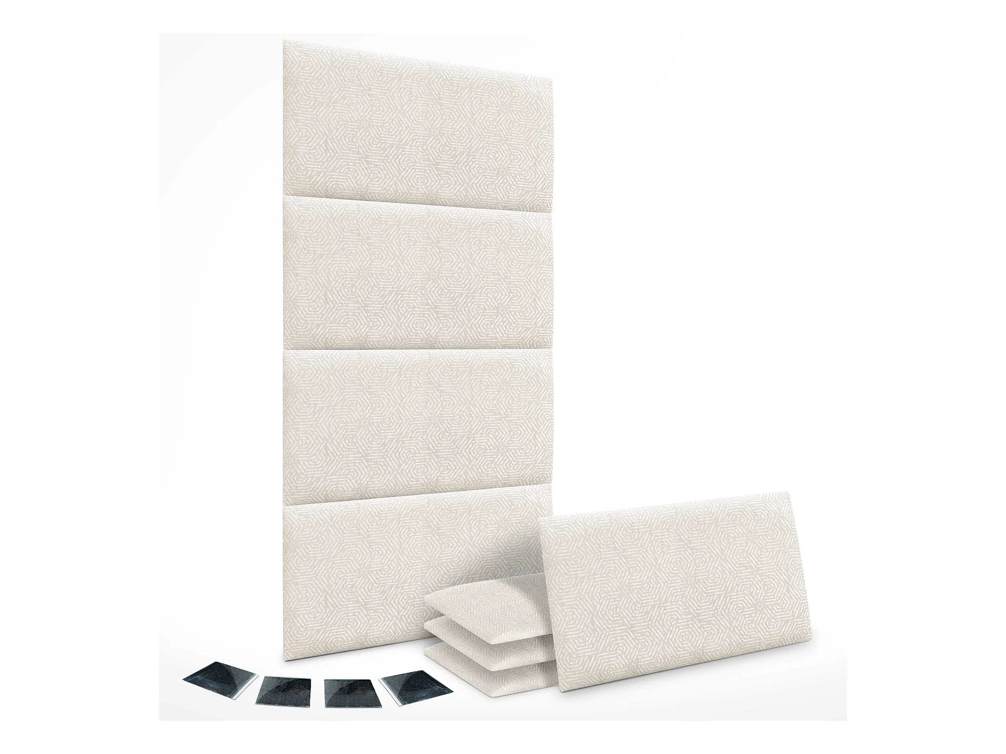 DHOME Set aus 8 luxuriös gepolsterte Paneele aus Stoff, Selbstklebende Akustik-Wandpaneele, schallabsorbierend, schützend (Ethnic White, 50x40cm, x8)