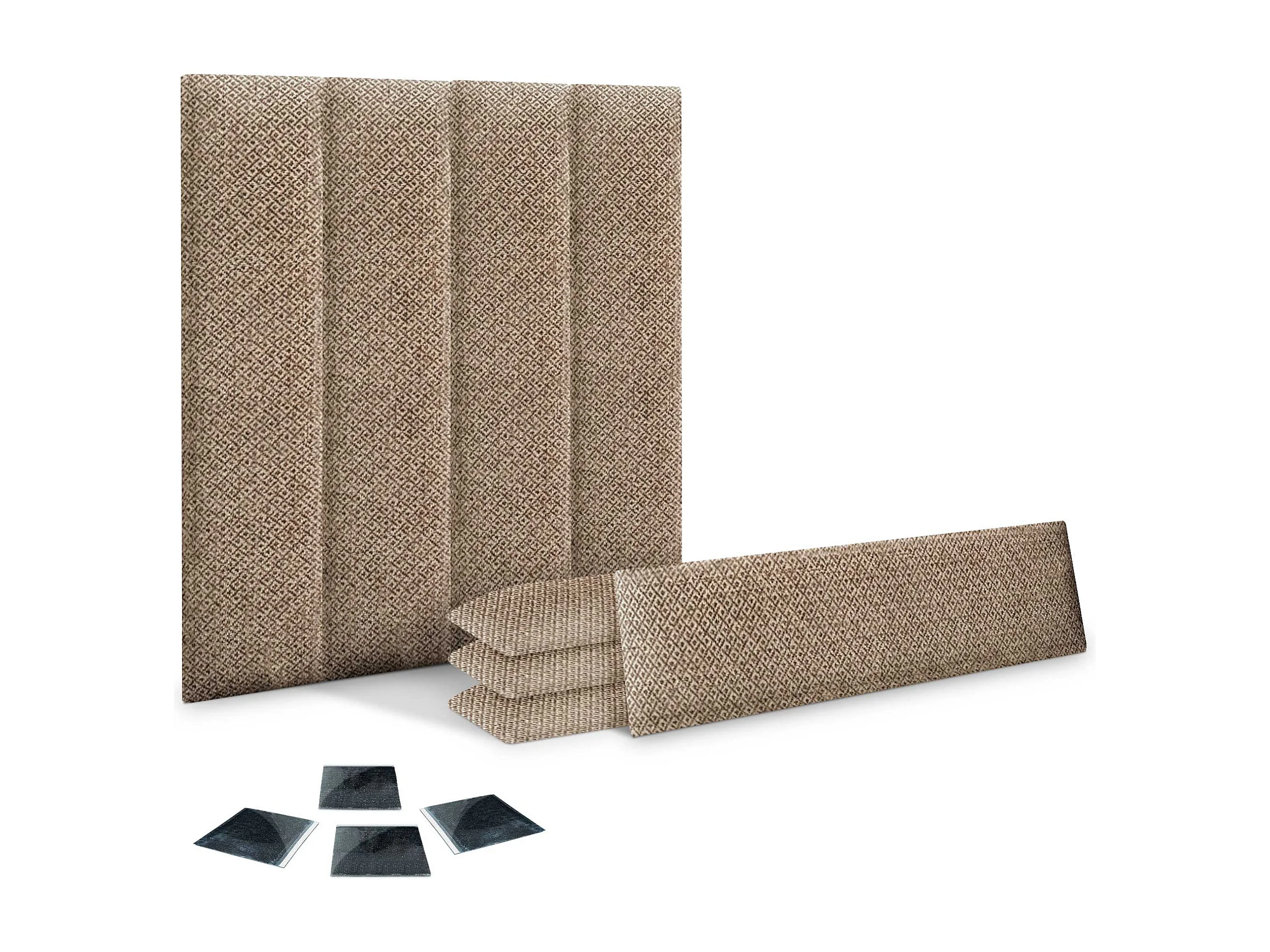 DHOME Set aus 8 luxuriös gepolsterte Paneele aus Stoff, Selbstklebende Akustik-Wandpaneele, schallabsorbierend, schützend (Golden Wood, 60x20cm, x8)