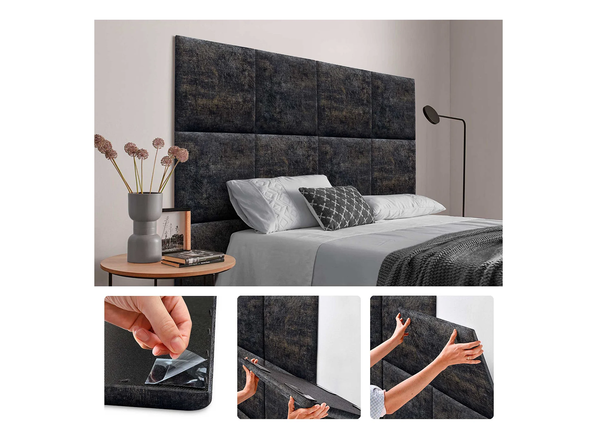 DHOME Set aus 8 luxuriös gepolsterte Paneele aus Stoff, Selbstklebende Akustik-Wandpaneele, schallabsorbierend, schützend (Luxurious Black, 60x40cm, x8)