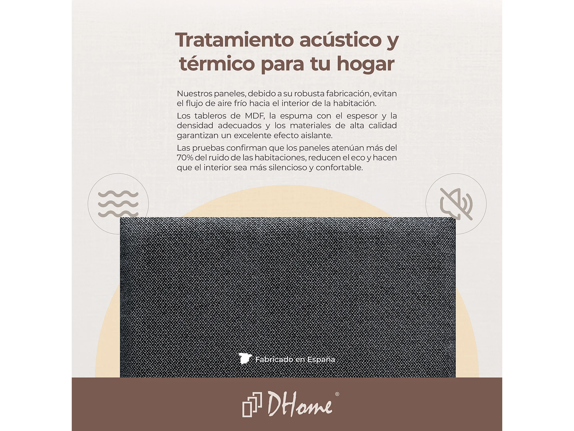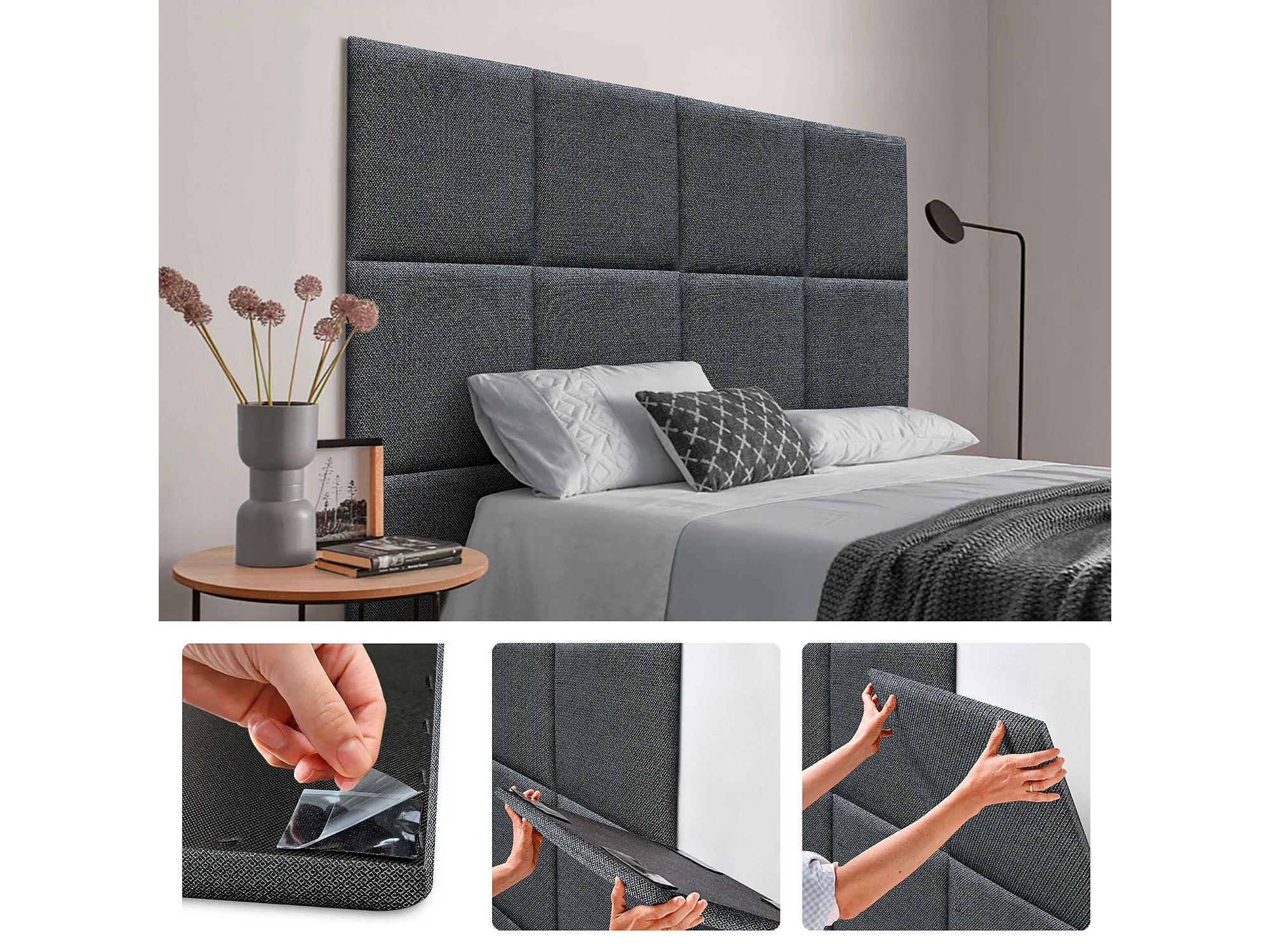 DHOME Set aus 8 luxuriös gepolsterte Paneele aus Stoff, Selbstklebende Akustik-Wandpaneele, schallabsorbierend, schützend (Silver Ebony, 60x40cm, x8)