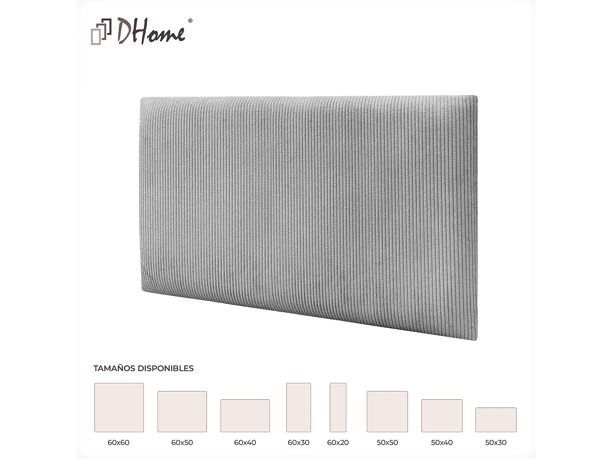 DHOME Set mit 1 gepolstertem Premium-Samt-Panel, selbstklebend für Wände, schallabsorbierend, stoßfest, Kopfteil-Schutz (Grau, 50x40cm, x6)