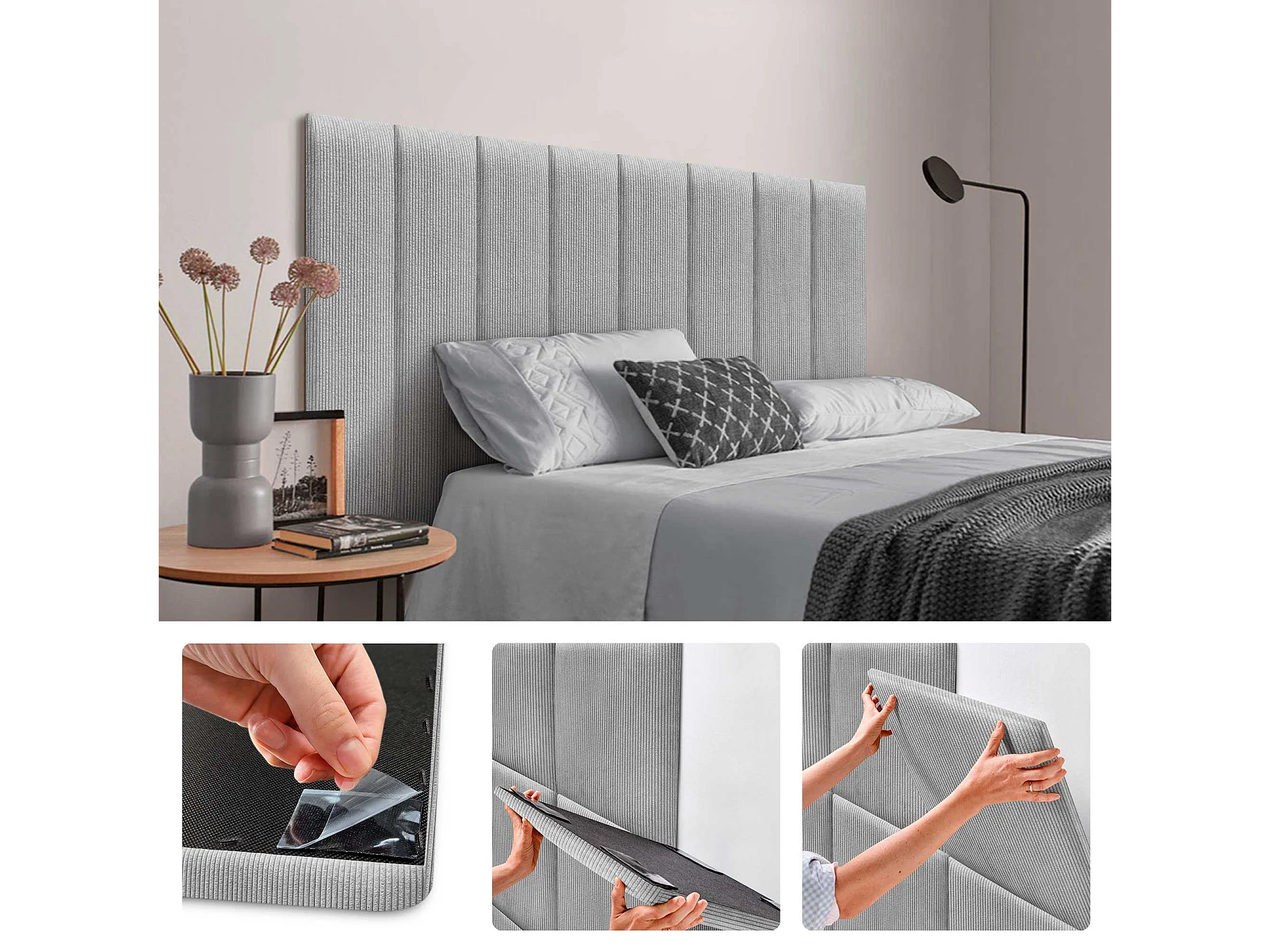 DHOME Set mit 1 gepolstertem Premium-Samt-Panel, selbstklebend für Wände, schallabsorbierend, stoßfest, Kopfteil-Schutz (Grau, 60x20cm, x6)