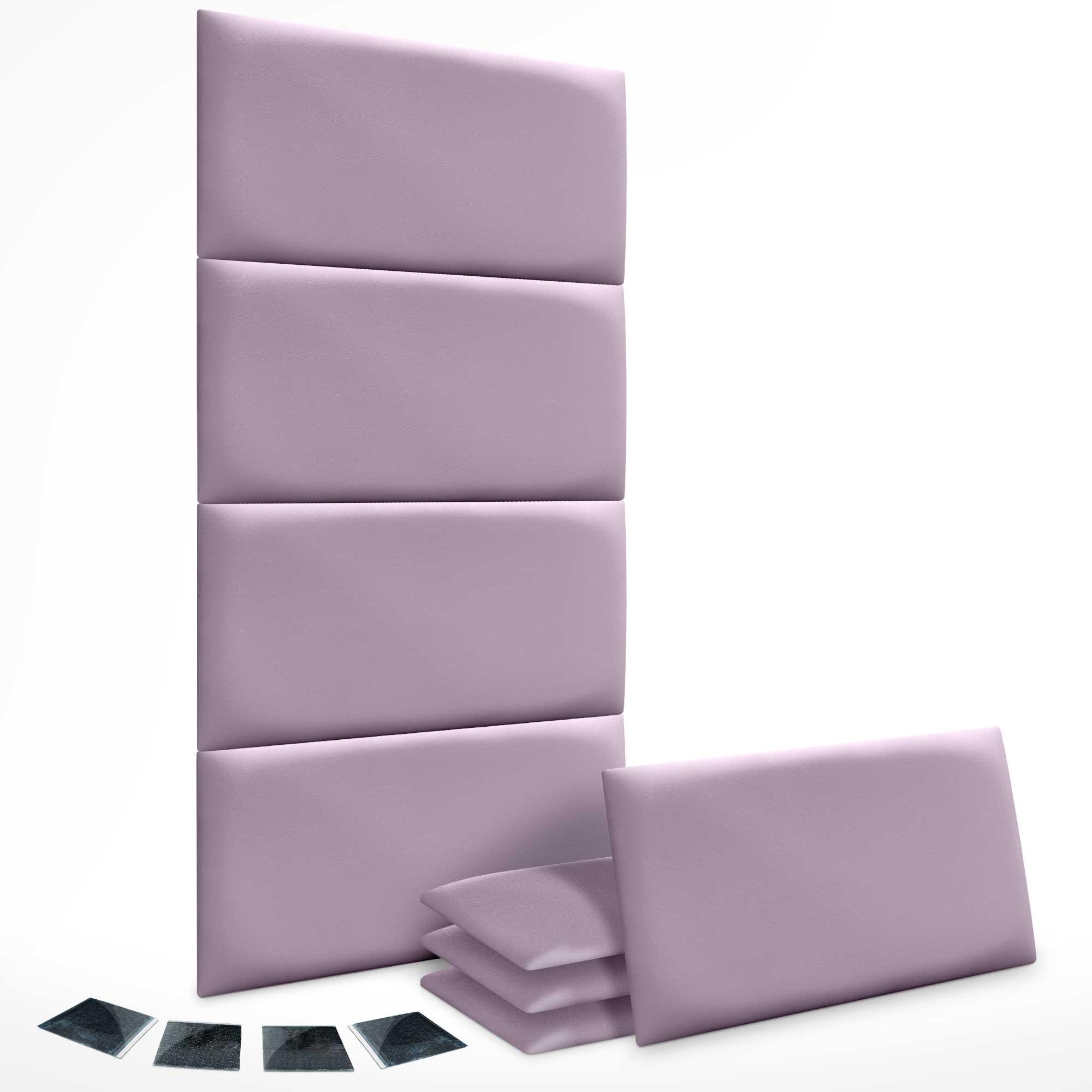 DHOME Set mit 8 umweltfreundlichen Kunstleder-Polsterplatten, selbstklebendes Paket für Wände, schallabsorbierender Schutz (Flieder, 60x50 cmx8)