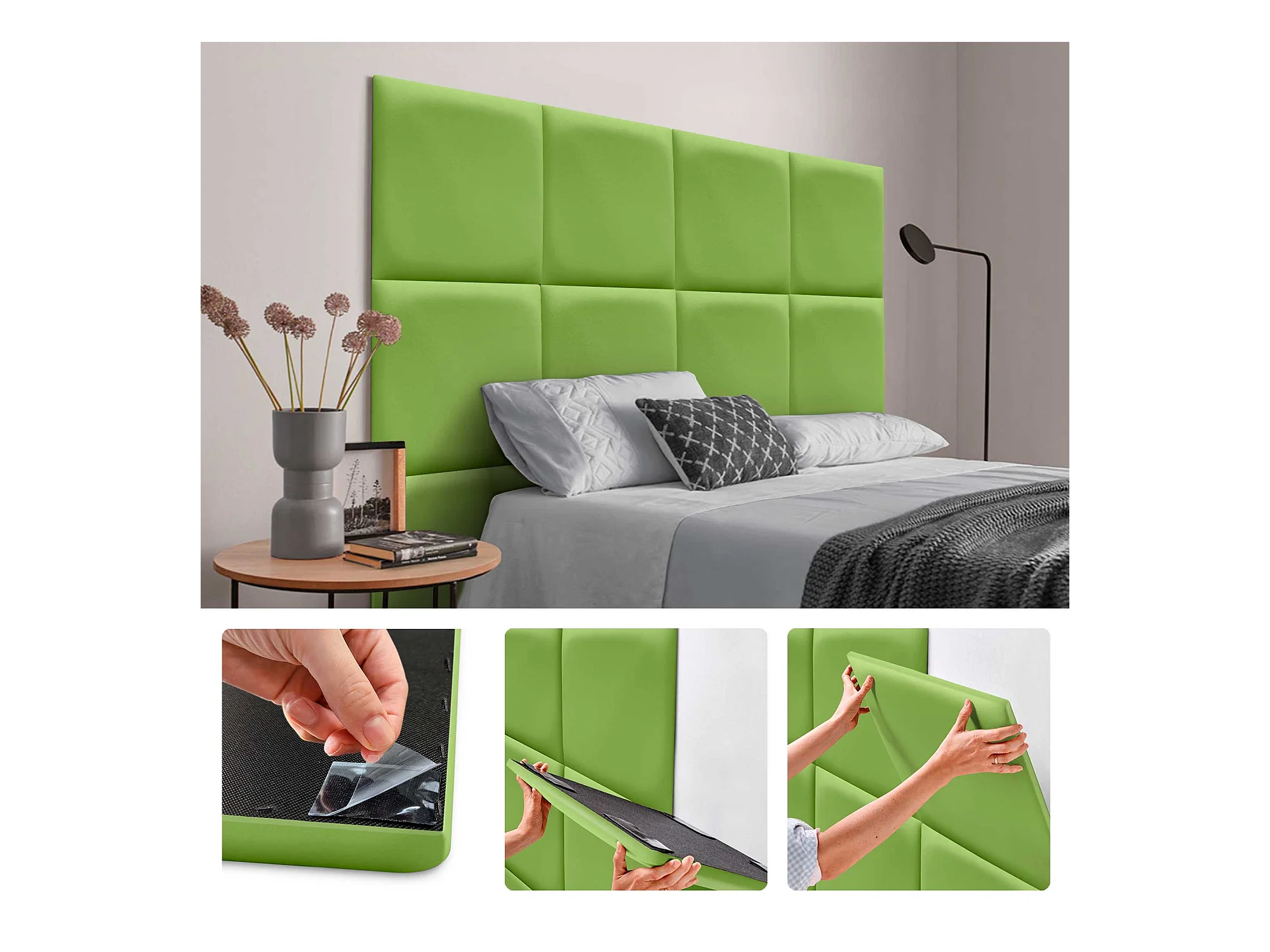DHOME Set mit 8 umweltfreundlichen Kunstleder-Polsterplatten, selbstklebendes Paket für Wände, schallabsorbierender Schutz (Grün, 60x60 cmx8)