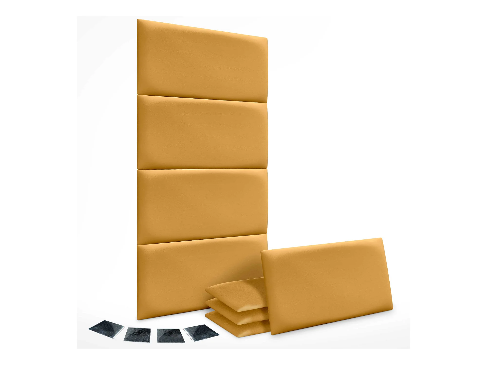 DHOME Set mit 8 umweltfreundlichen Kunstleder-Polsterplatten, selbstklebendes Paket für Wände, schallabsorbierender Schutz (Senfgelb, 60 x 50 cm x 8)