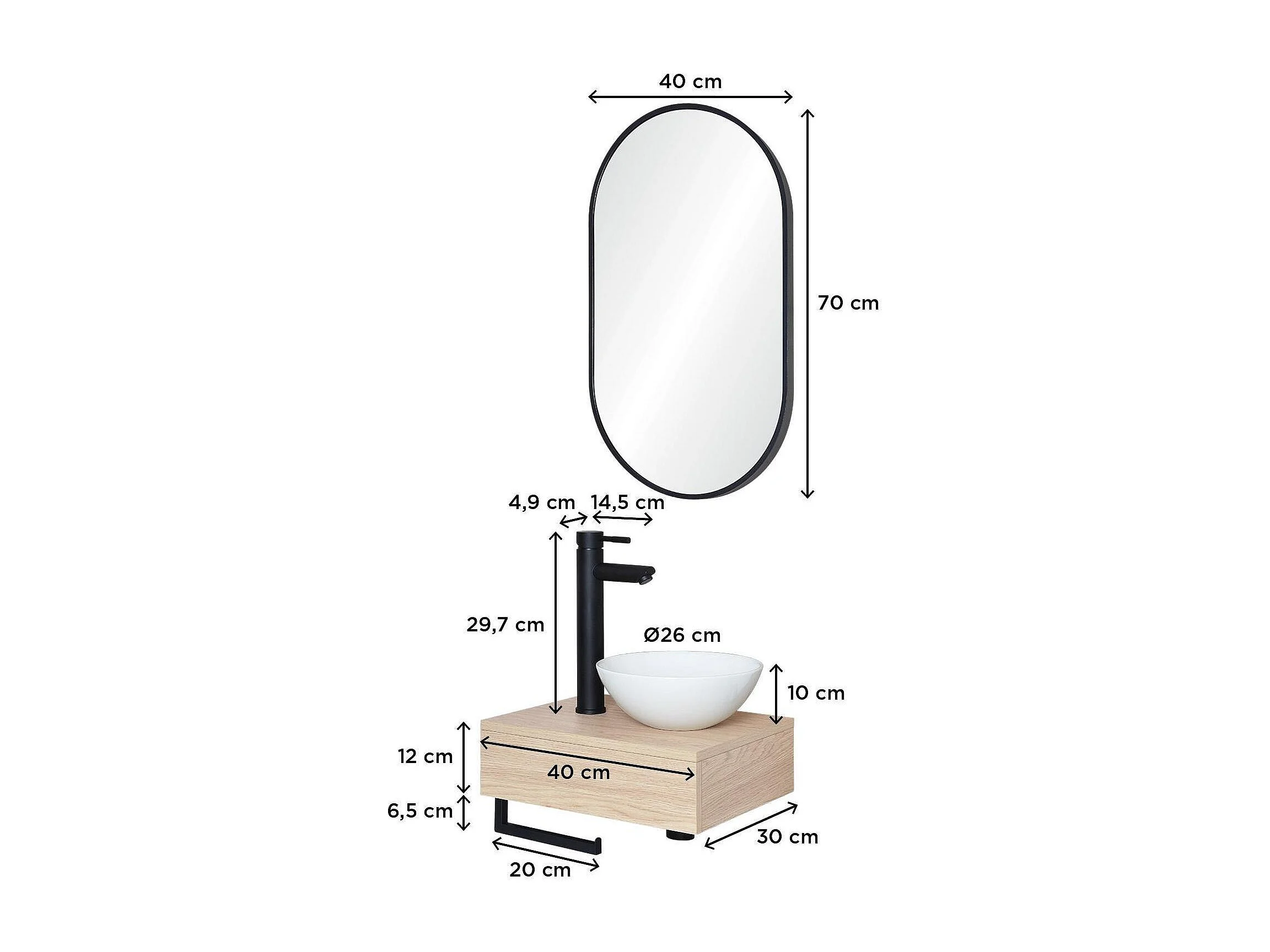 Dickes Waschbecken + Waschbecken + Wasserhahn + Spiegel SOHO