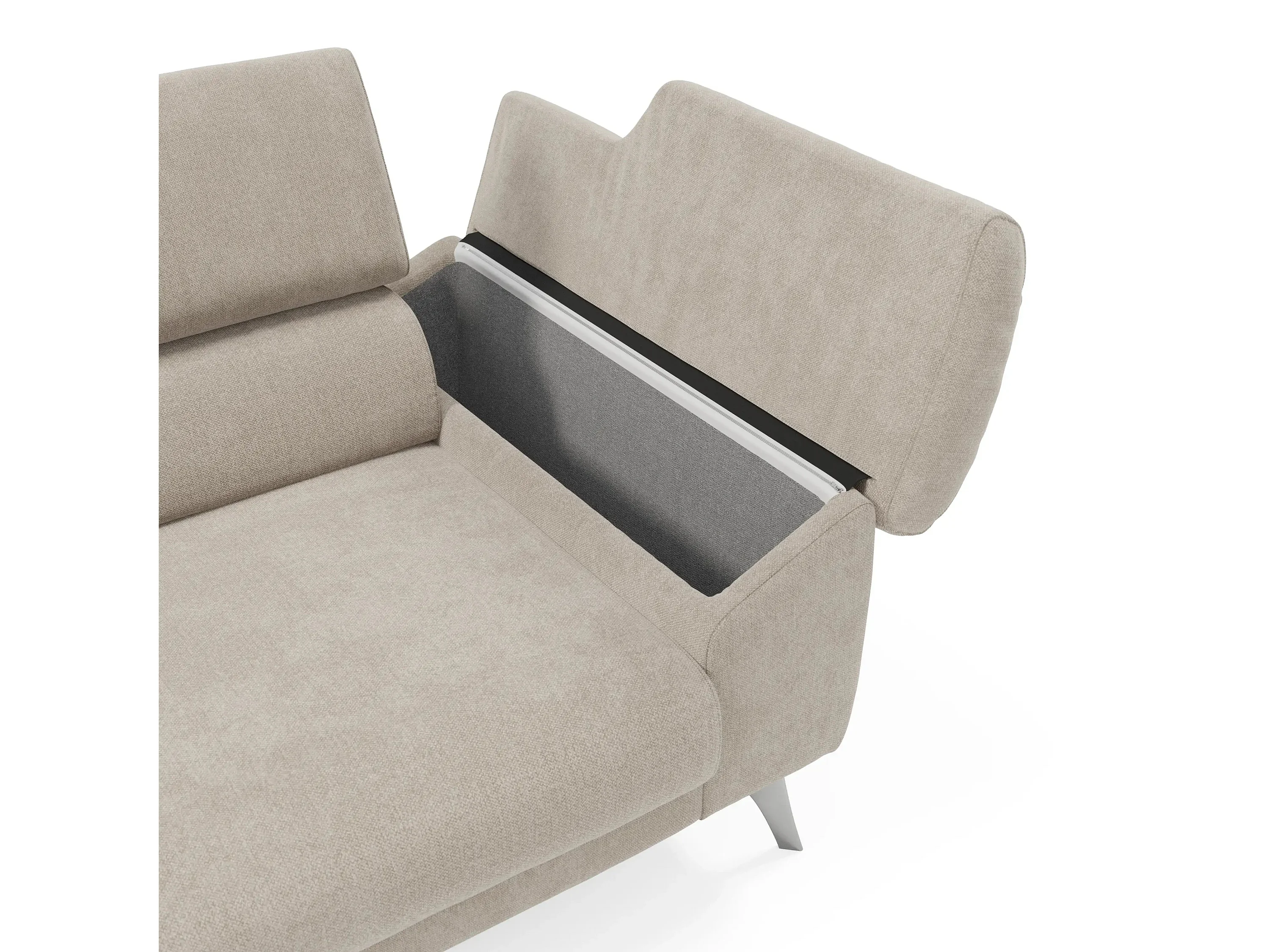 Donatello Sofa mit ausziehbaren Sitzen, Armlehnen mit Staufach aus abwaschbarem Stoff T23 183 cm Creme