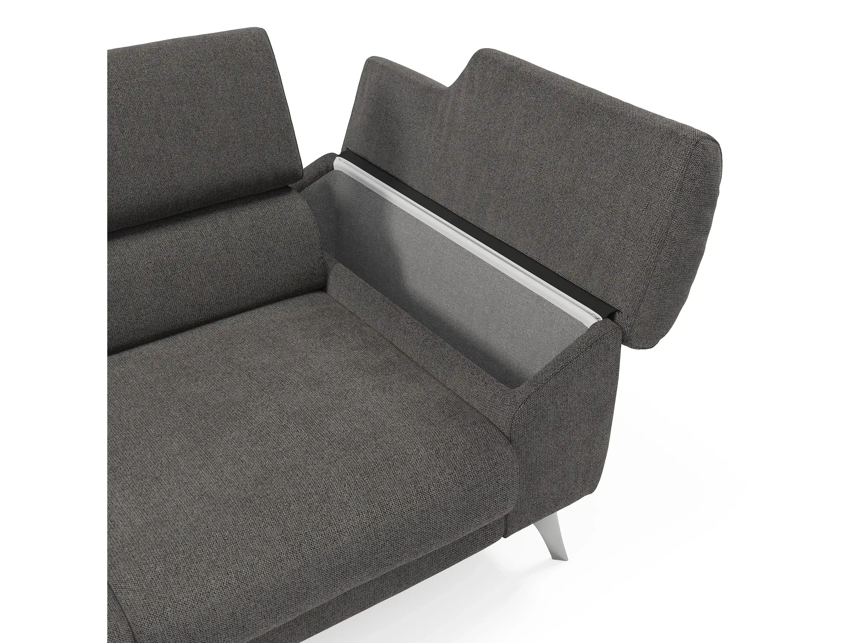 Donatello Sofa mit ausziehbaren Sitzen, Armlehnen mit Staufach aus abwaschbarem Stoff T23 265 cm Anthrazit