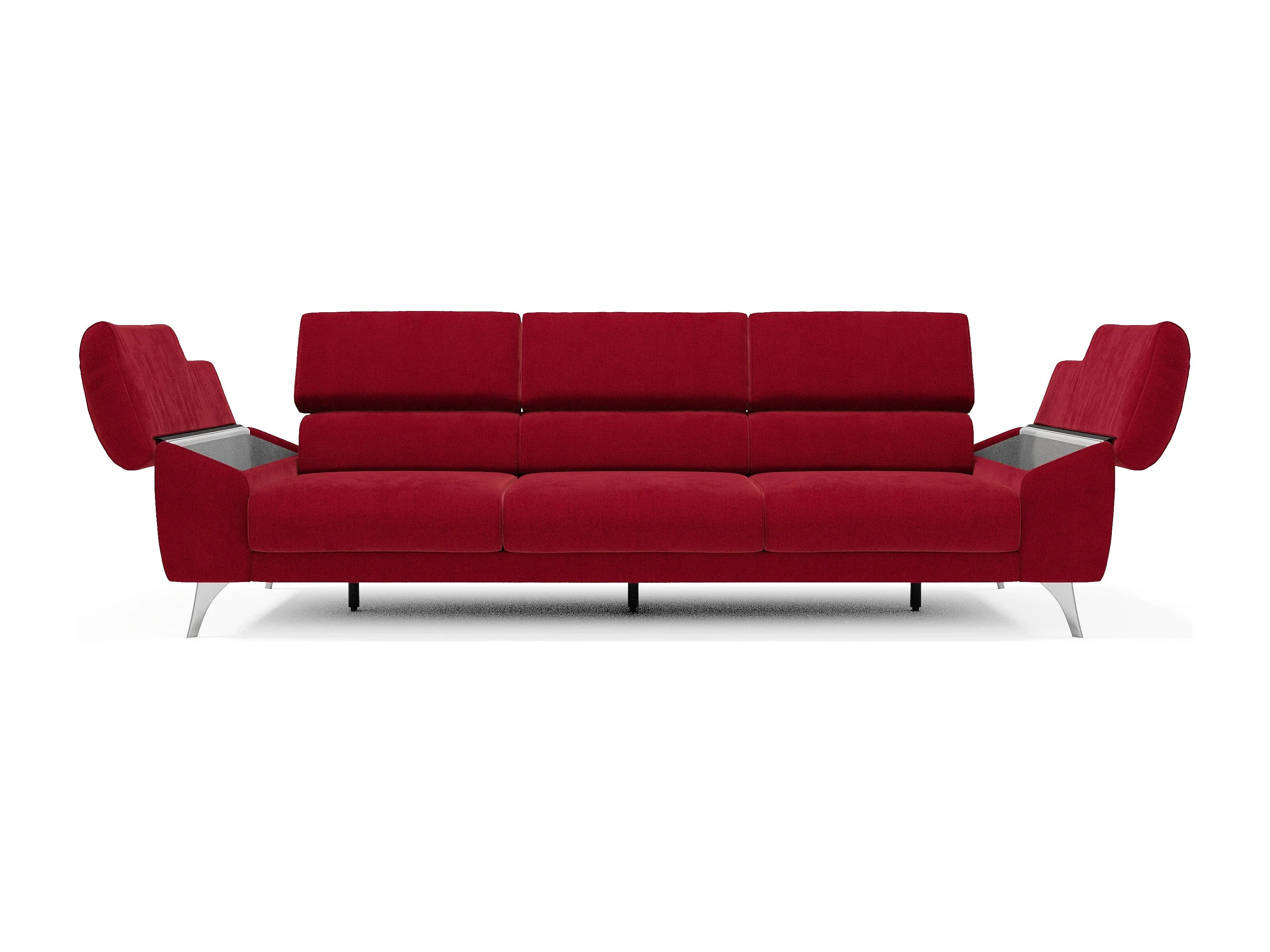 Donatello Sofa mit ausziehbaren Sitzen, Armlehnen mit Staufach aus abwaschbarem Stoff T23 265 cm Burgunder