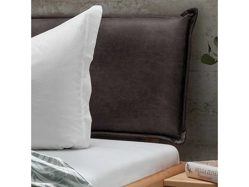 Doppel Bett aus Kernbuche Massivholz und Metall Polster Kopfteil