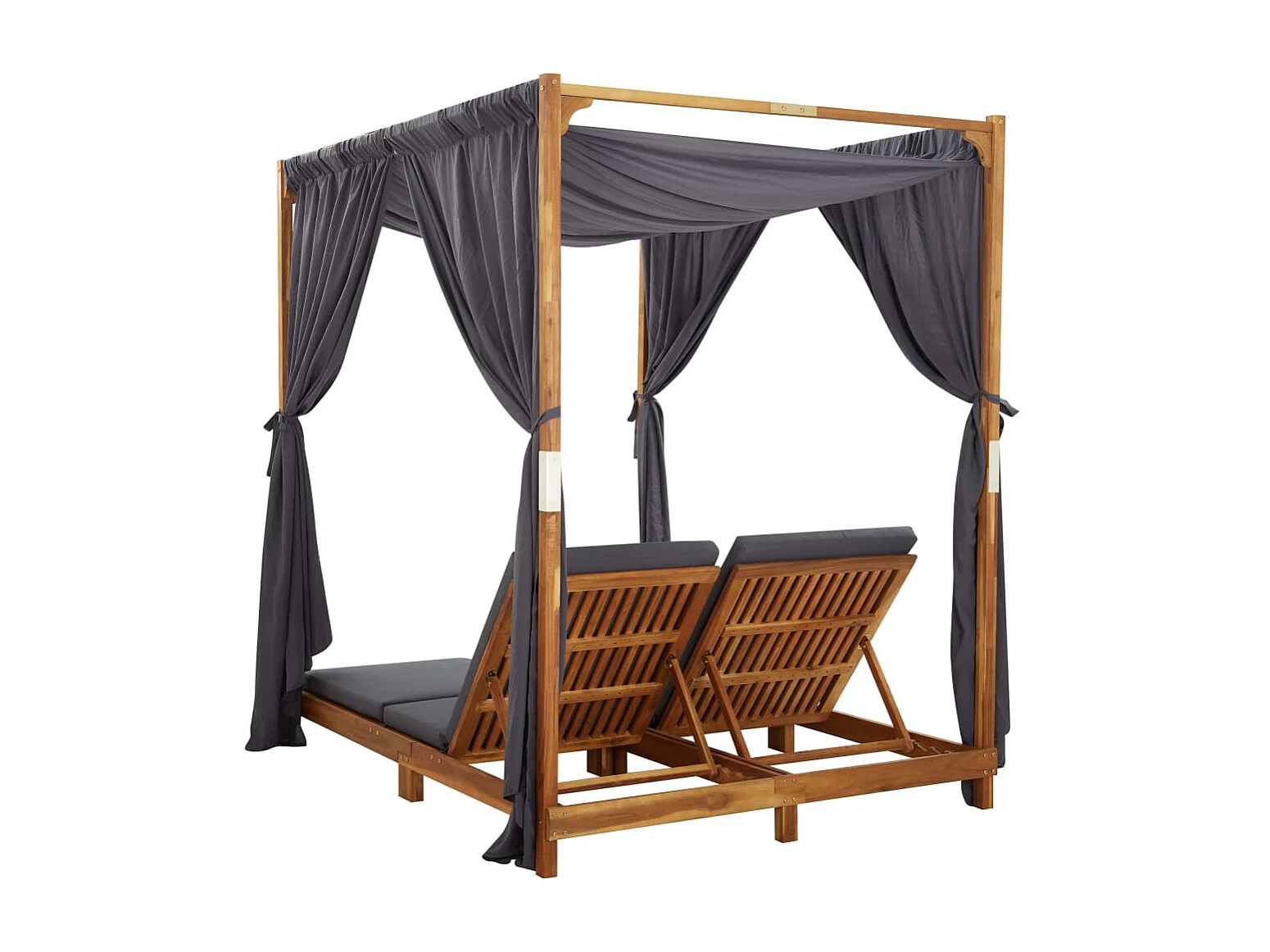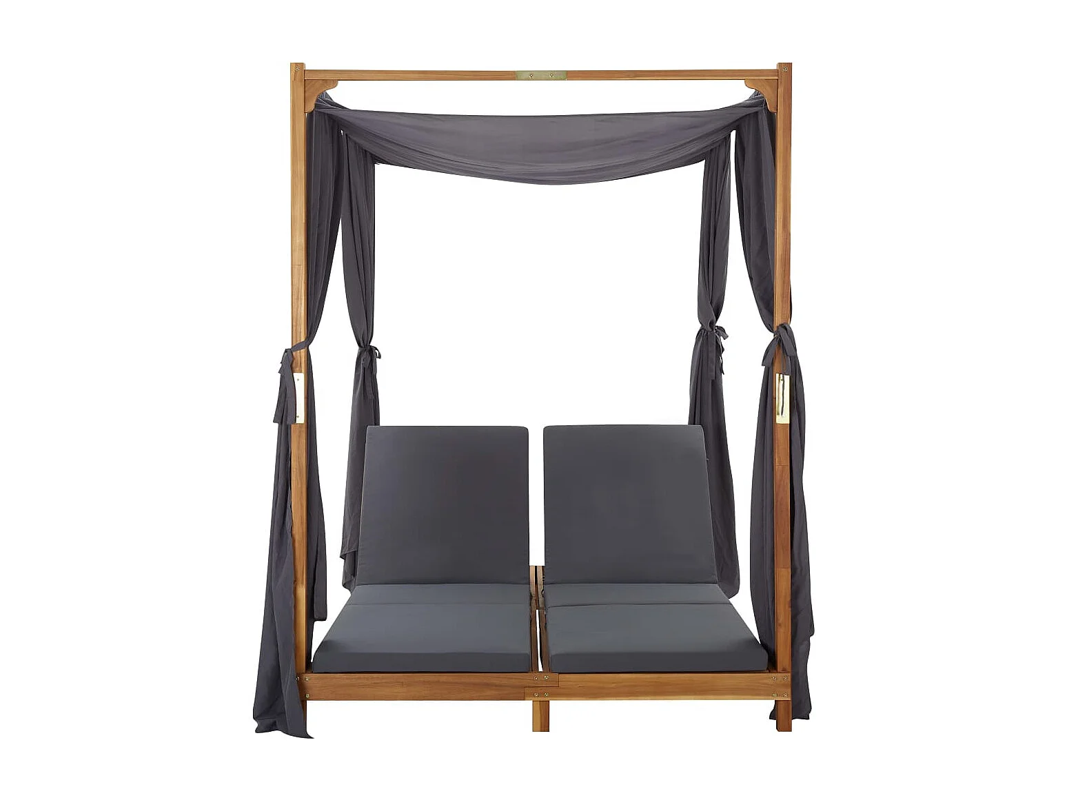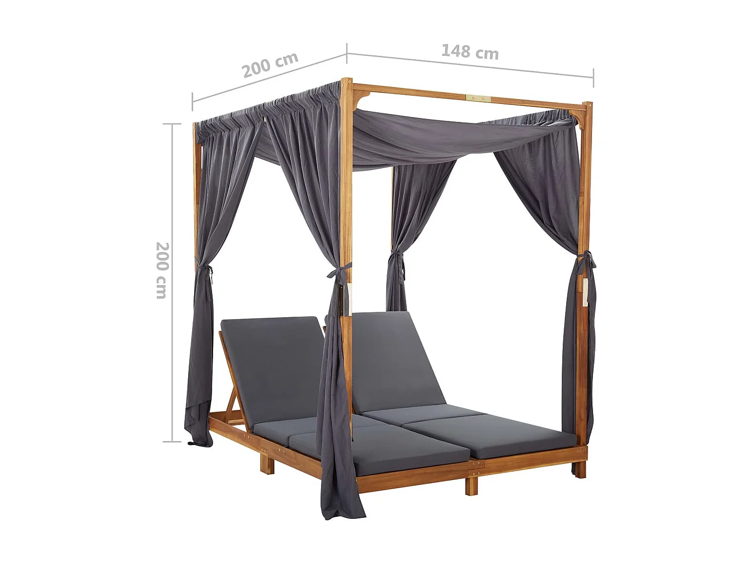 Doppel-Sonnenliege mit Vorhängen und Auflagen Akazie Massivholz