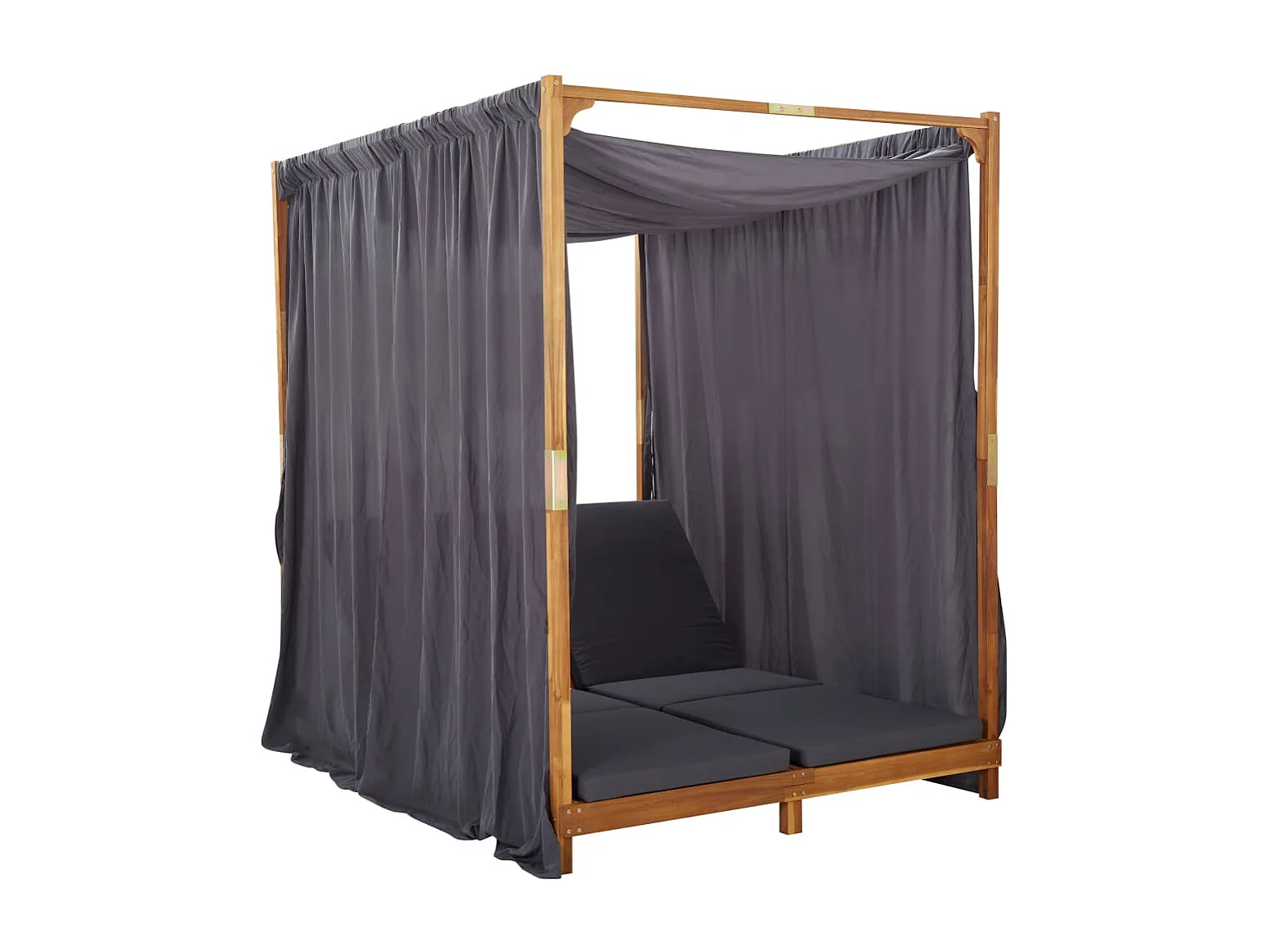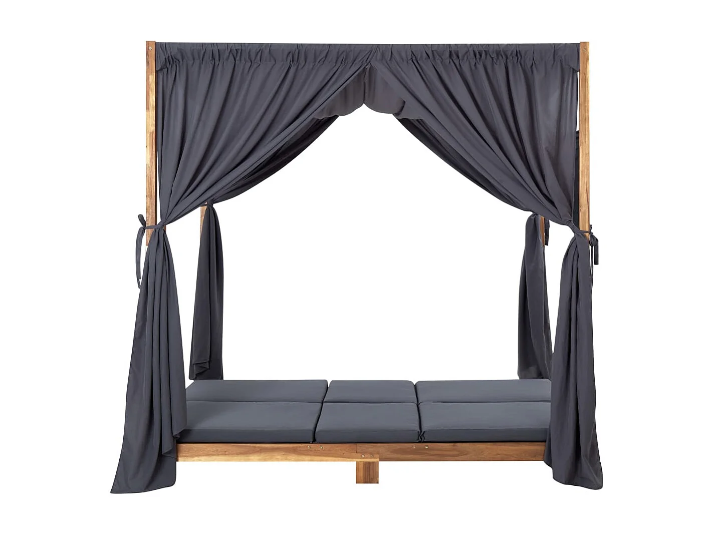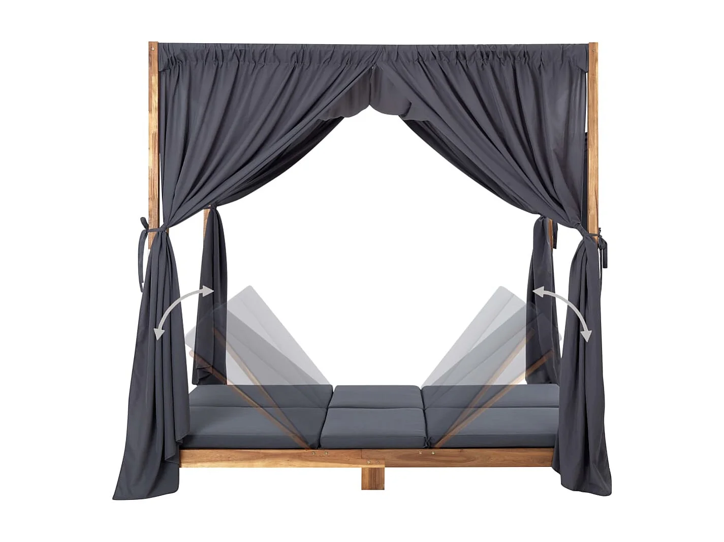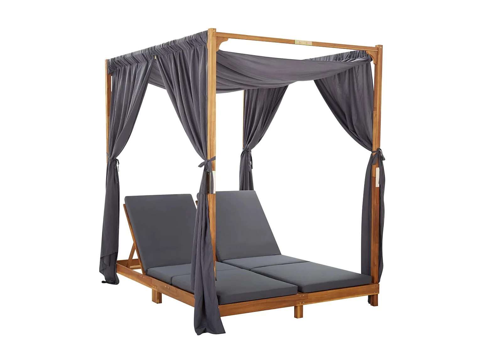 Doppel-Sonnenliege mit Vorhängen und Auflagen Akazie Massivholz