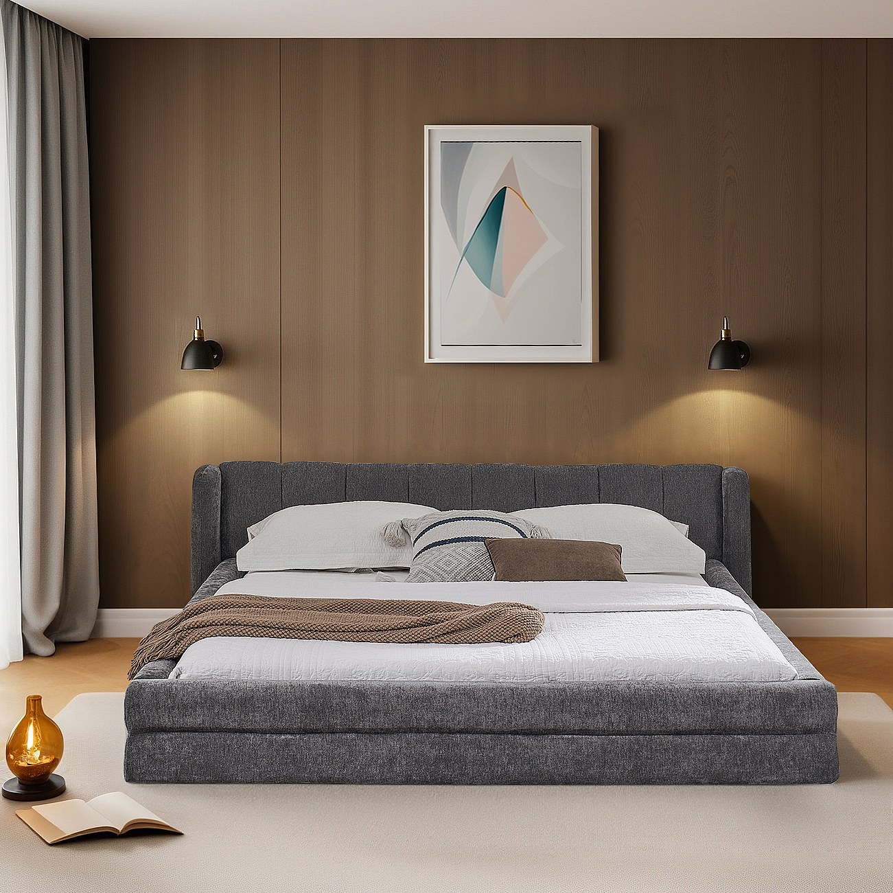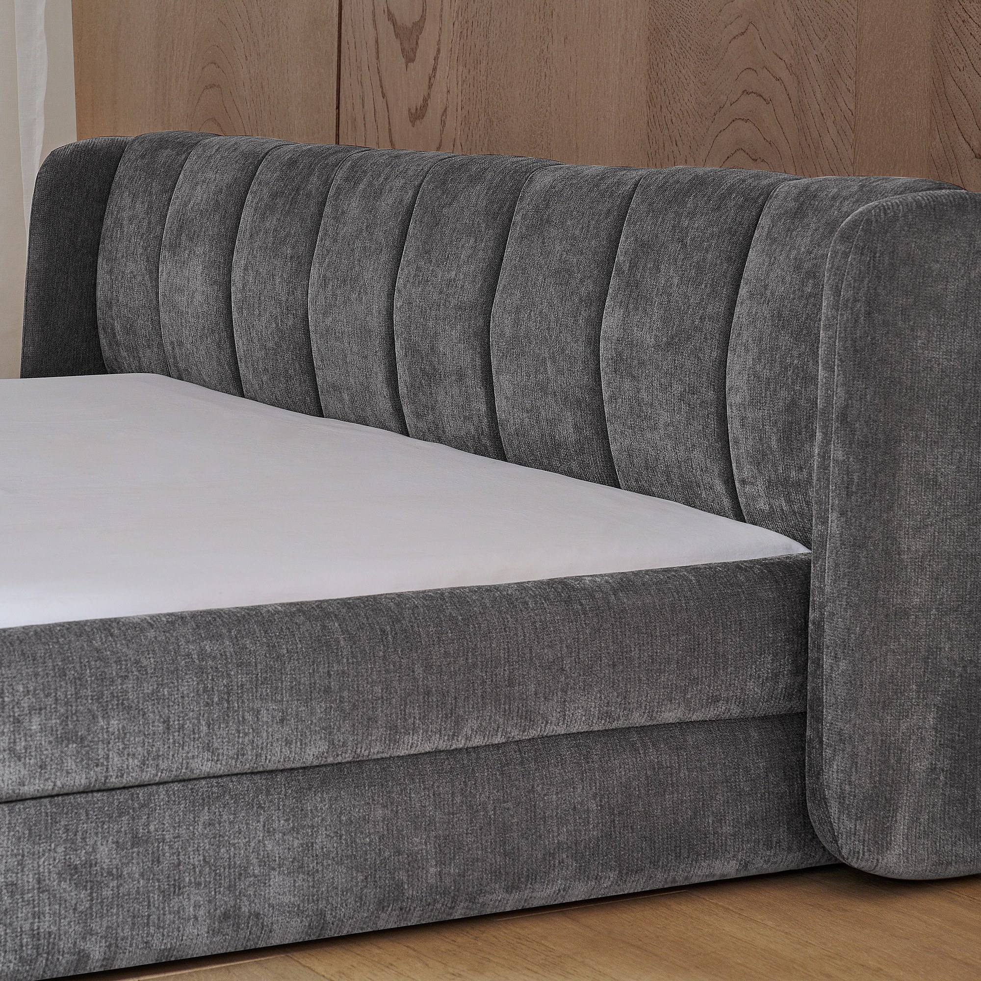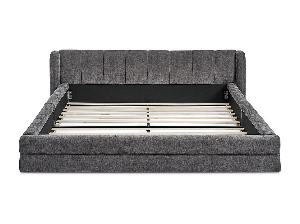 Doppelbett 140 x 200 cm – Erwachsenenbett mit weicher Rückenlehne – graues Chenille – Matratze nicht enthalten