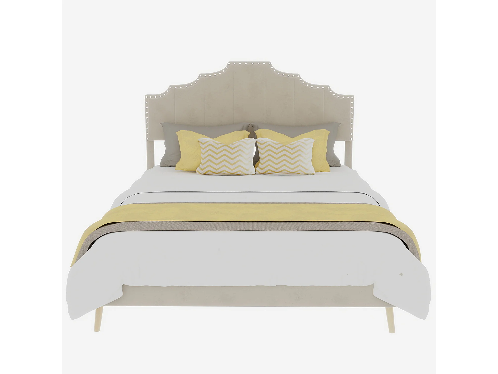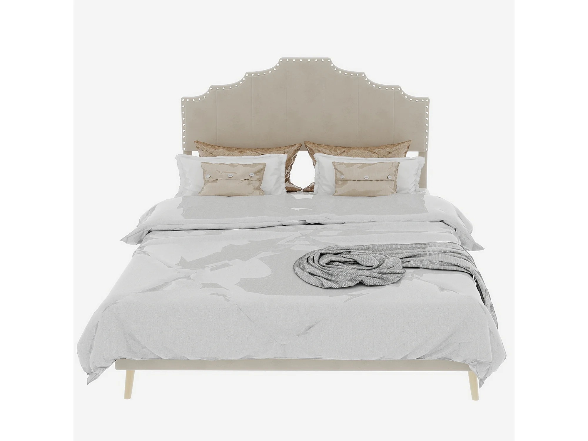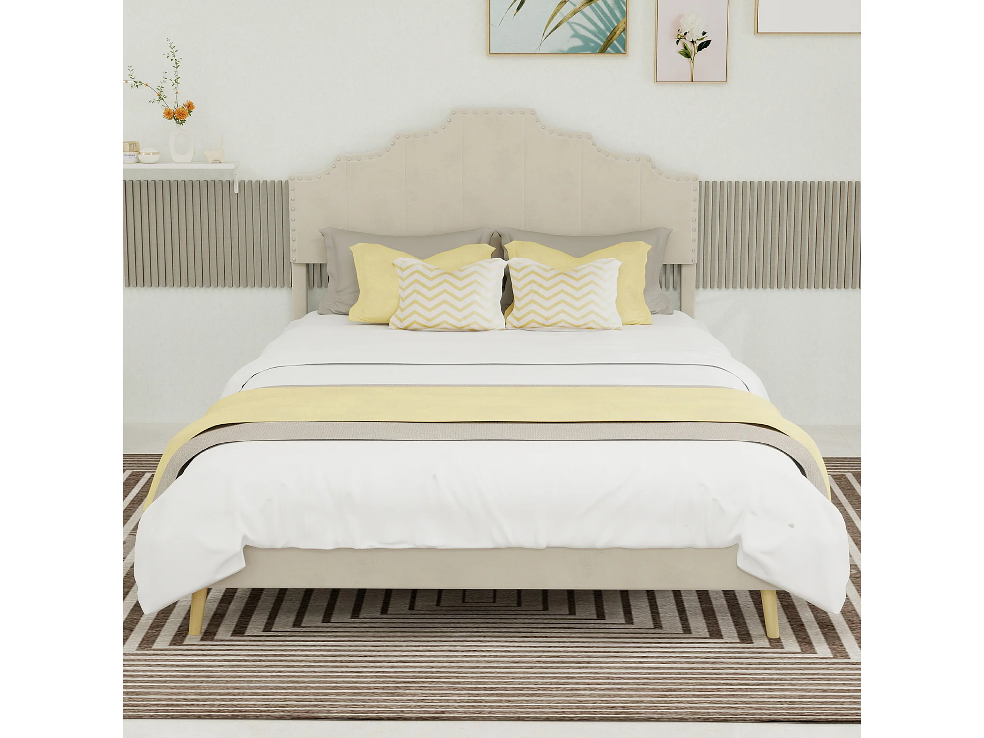 Doppelbett (140 x 200 cm) mit gepolstertem Kopfteil und Lattenrost – beiger Samt – ohne Matratze