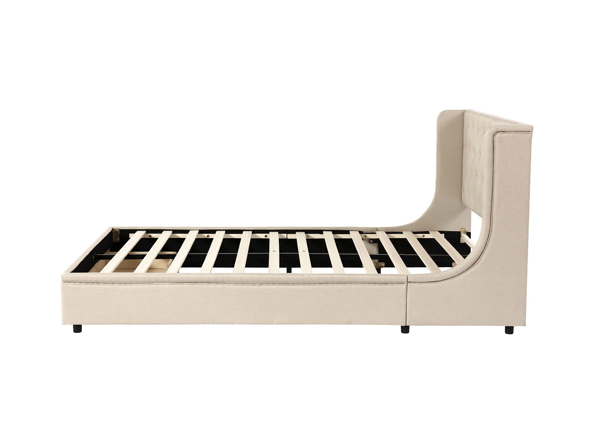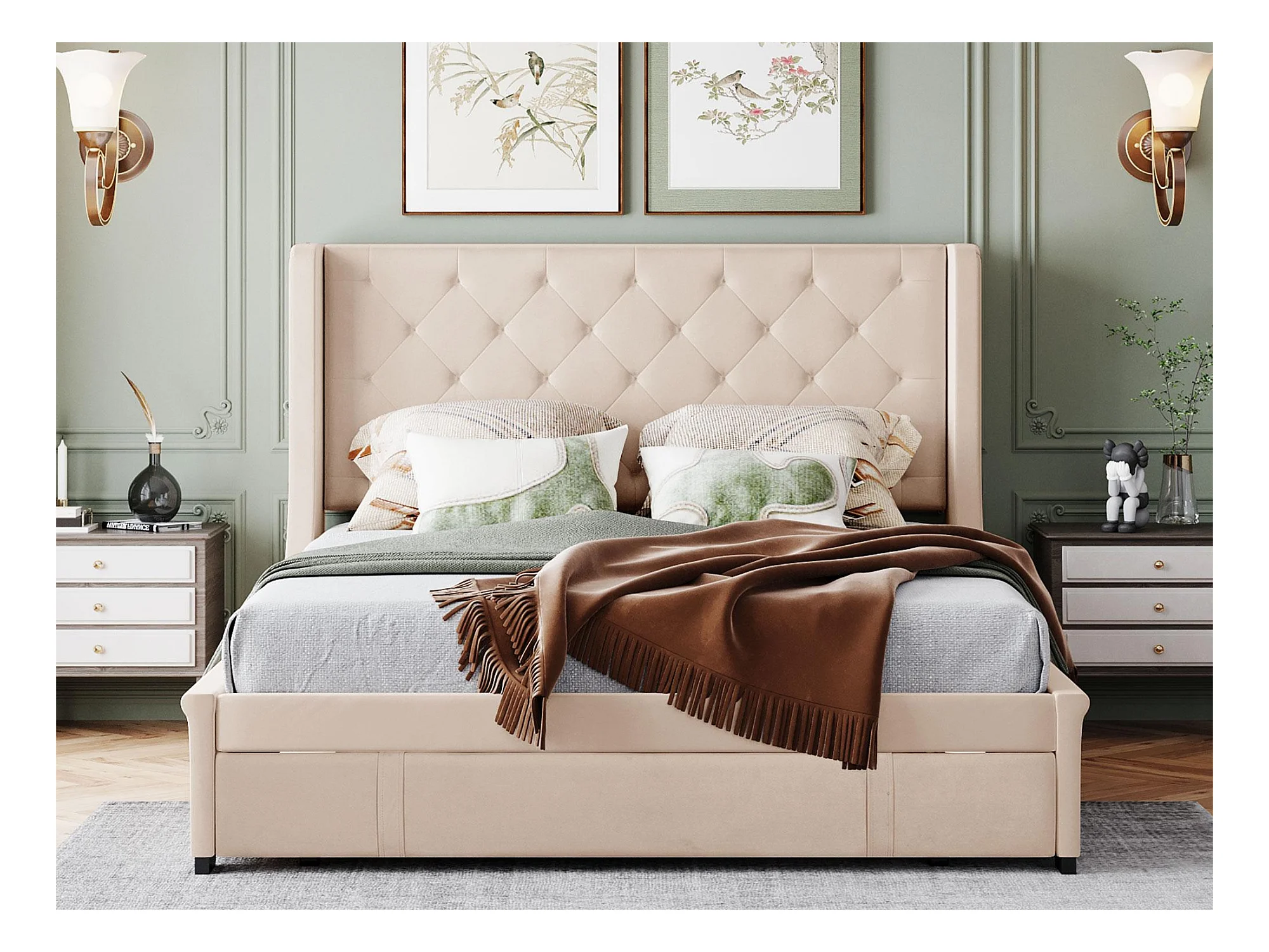 Doppelbett 140 x 200 cm mit großer Schublade, inklusive Lattenrost, Stoff beige