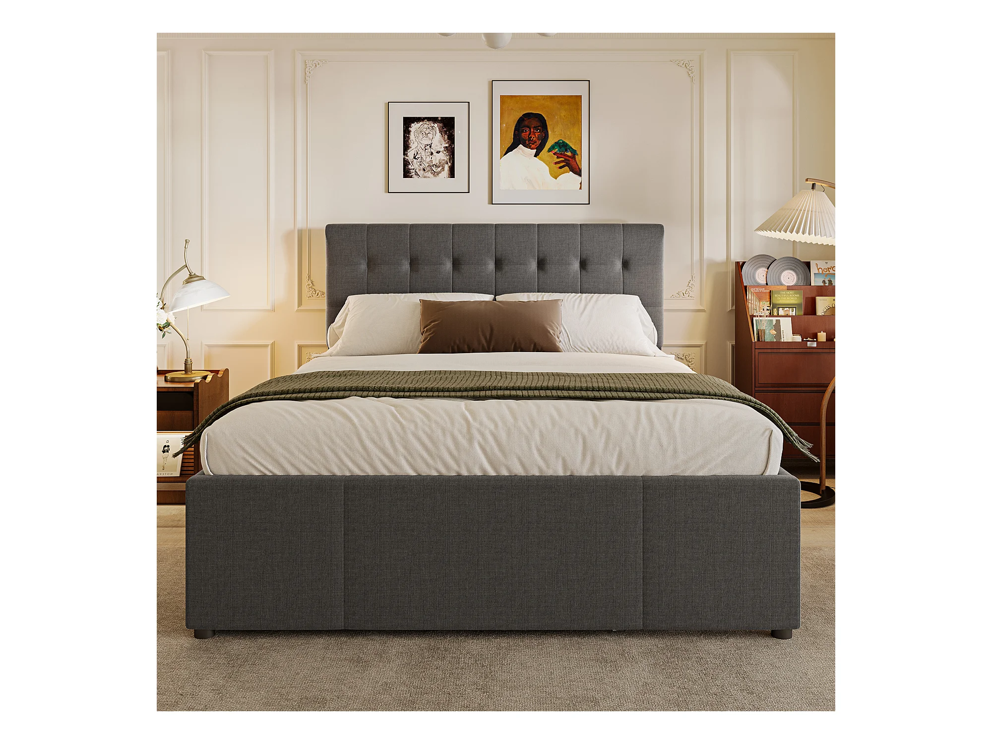 Doppelbett 140x200 cm grau – Familienbett mit 3 Schubladen, Ausziehbett, verstellbarem Kopfteil, ohne Matratze