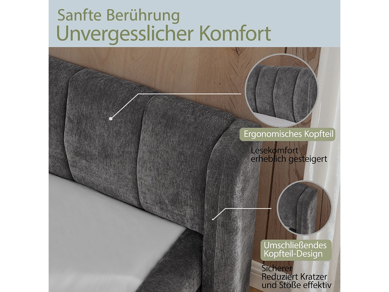Doppelbett 160 × 200 cm aus Chenille-Stoff, komfortables Kopfteil, stabiles Gestell aus Eukalyptusholz und Metall, einfache Montage – Dunkelgrau