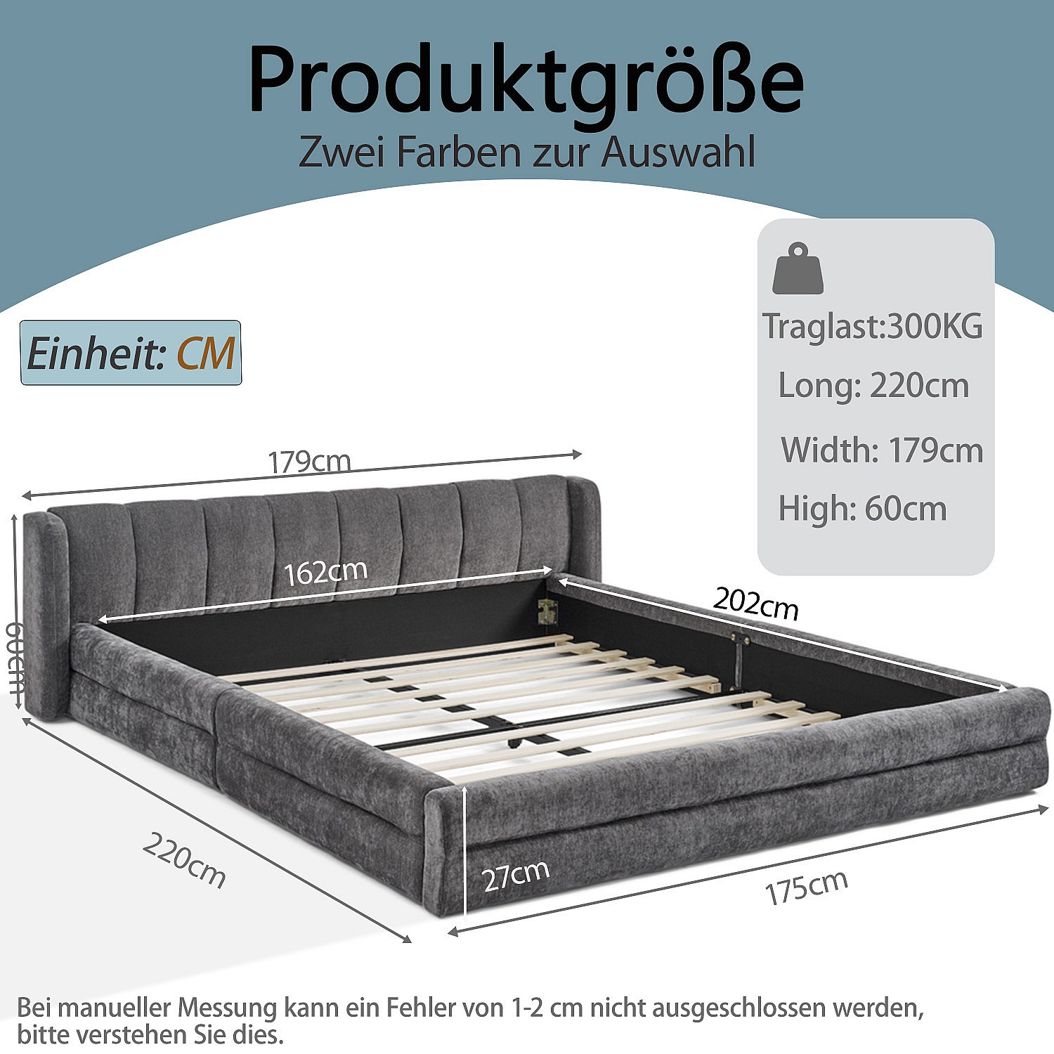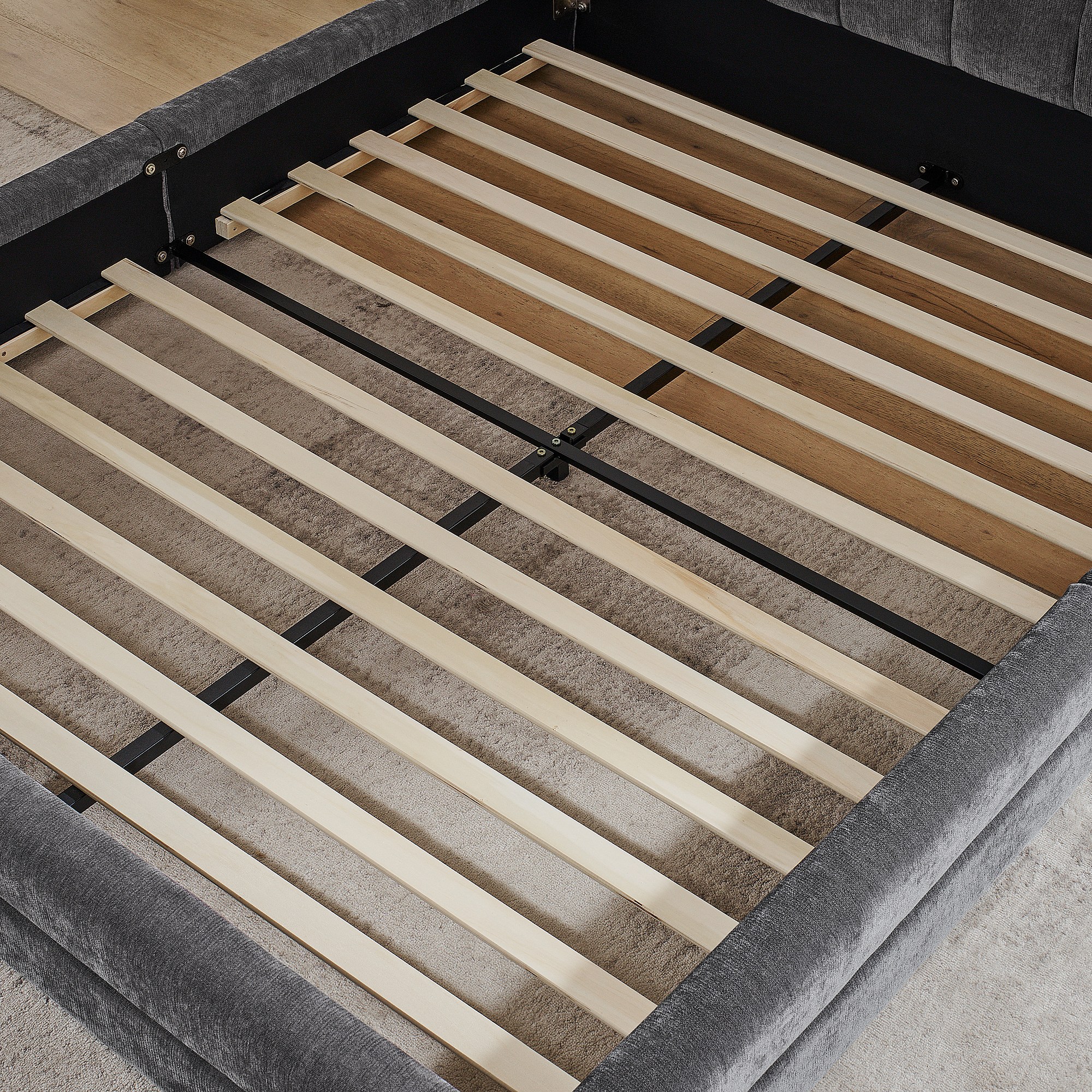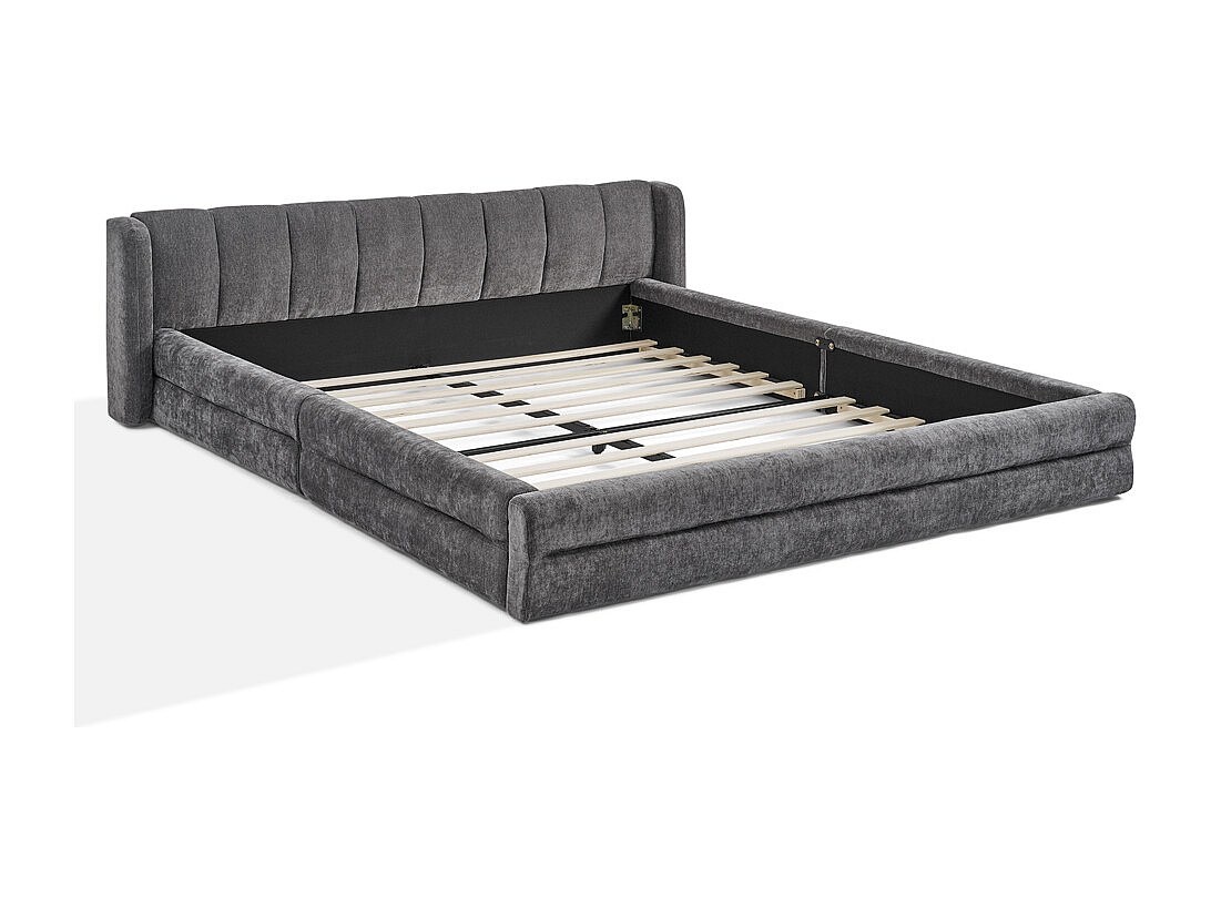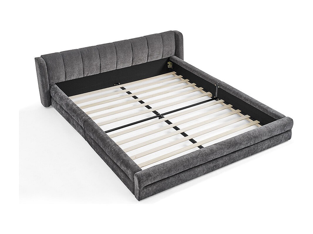 Doppelbett 160 x 200 cm – Erwachsenenbett mit weicher Rückenlehne – graues Chenille – Matratze nicht enthalten