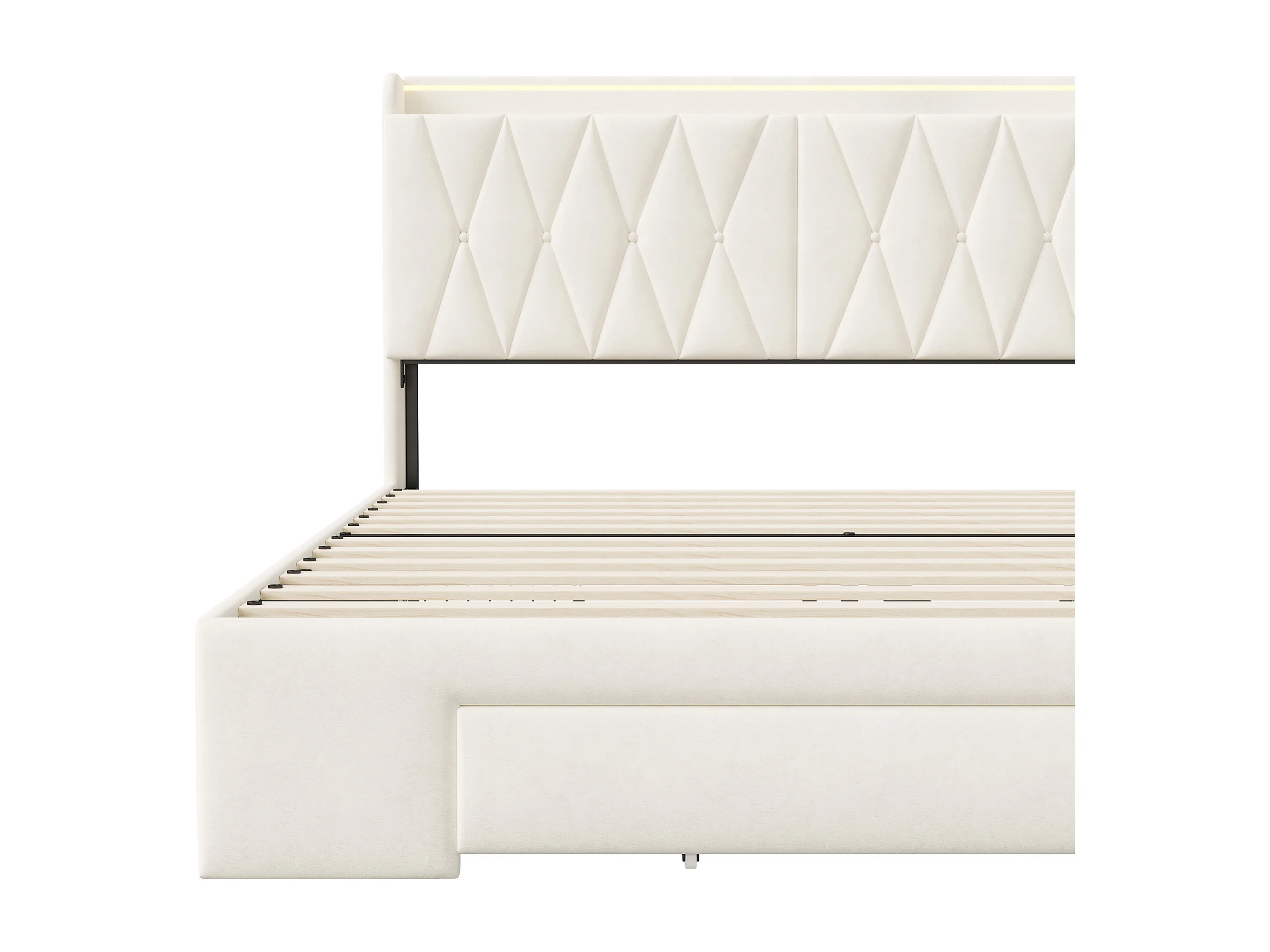 Doppelbett 160x200 Polsterbett, USB-Aufladung, verstellbare LED, Samt, beige