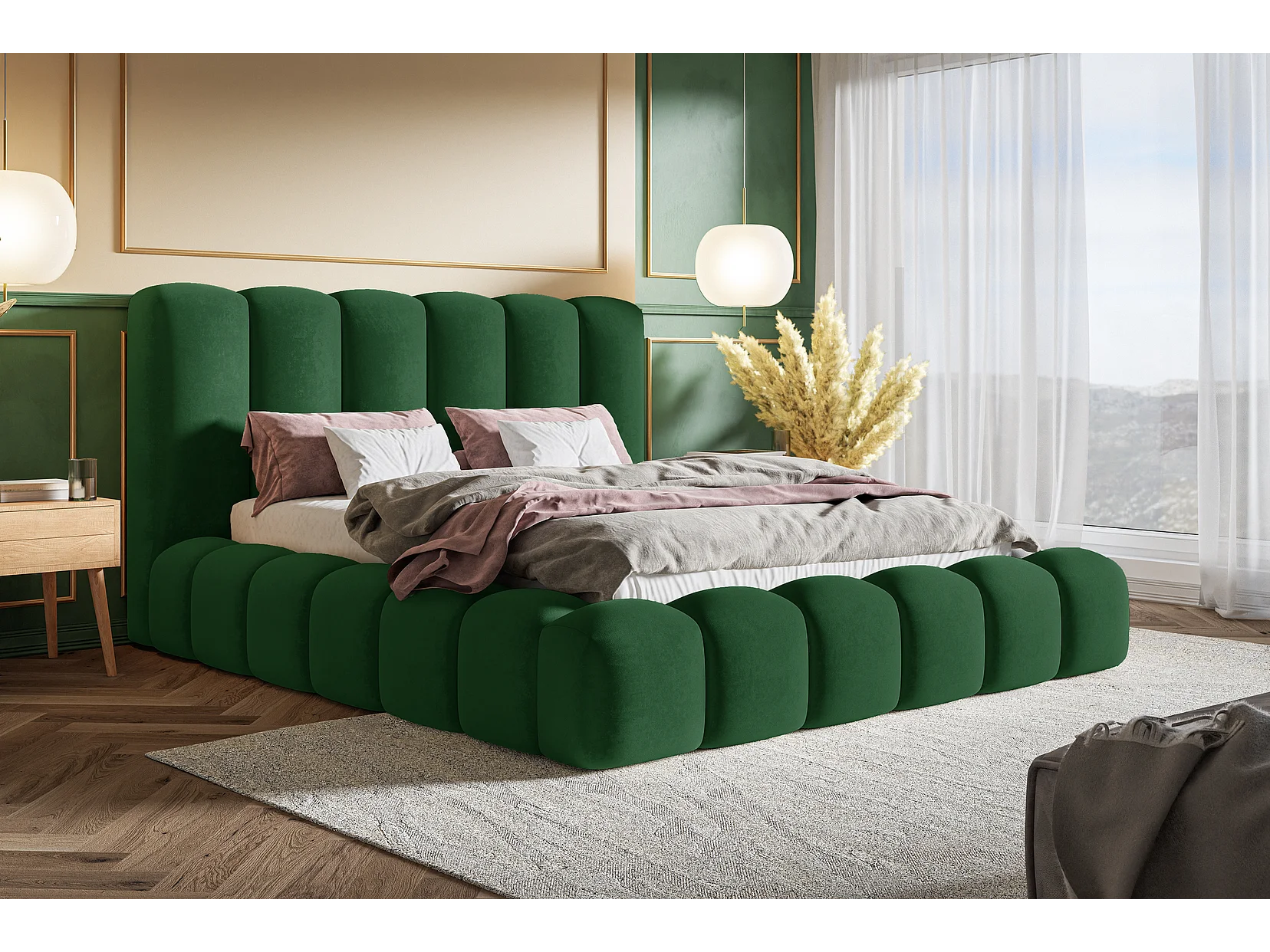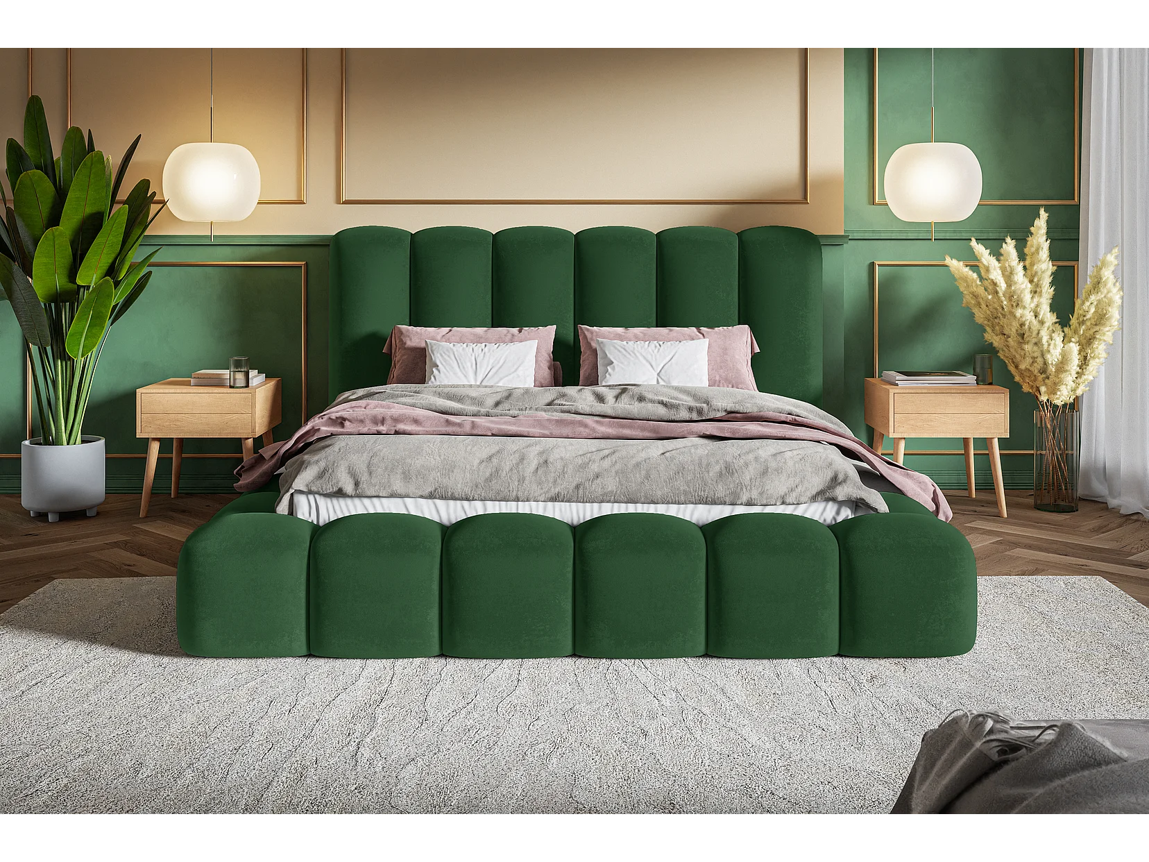 Doppelbett 180x200 Madeno mit Bettkasten - hochwertigem Schaumstoff, Lattenrost - Samtstoff, Grün (Amor Velvet 4311)