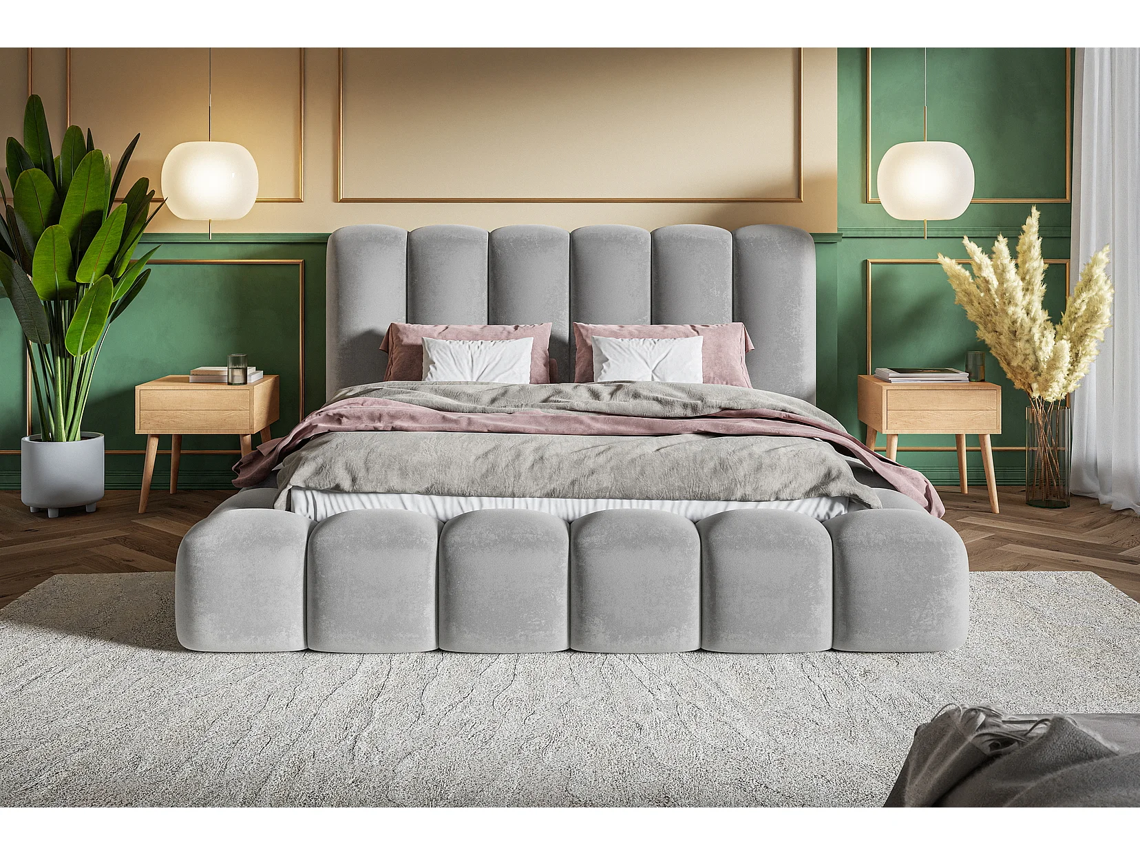Doppelbett 180x200 Madeno mit Bettkasten - hochwertigem Schaumstoff, Lattenrost - Samtstoff, Hellgrau (Amor Velvet 4318)