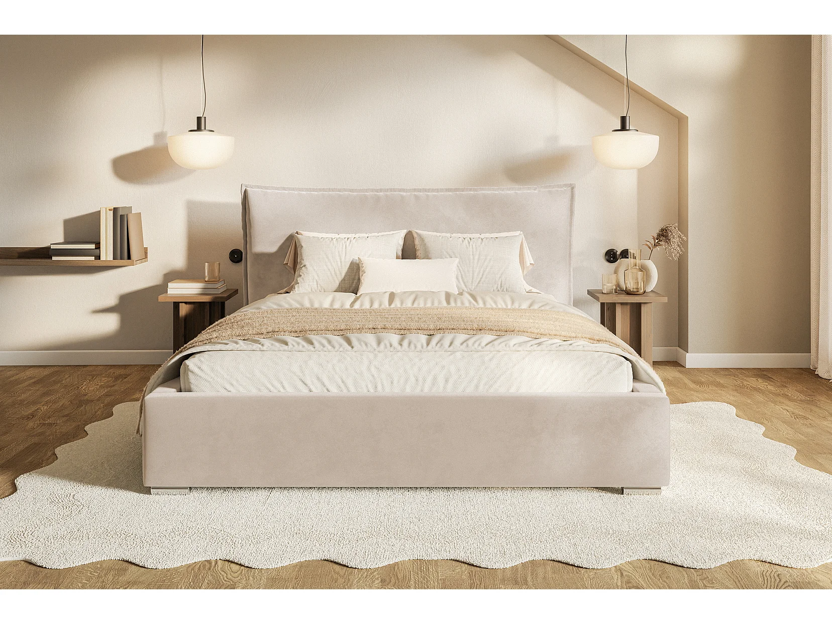 Doppelbett 180x200 Zenito mit Bettkasten - Samtstoff, Kissen-Kopfteil, Metall-Lattenrost - Beige (Amor Velvet 4304)