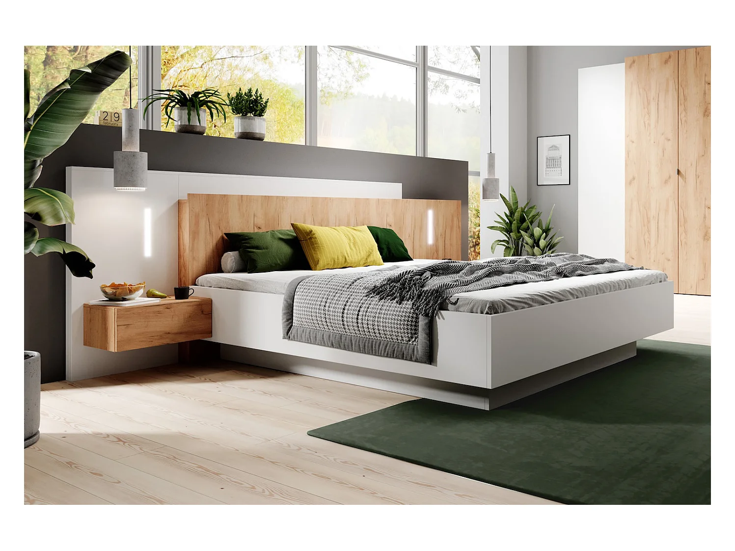 DOPPELBETT 3D weiß gold craft oak 264 / 218 / 102 cm