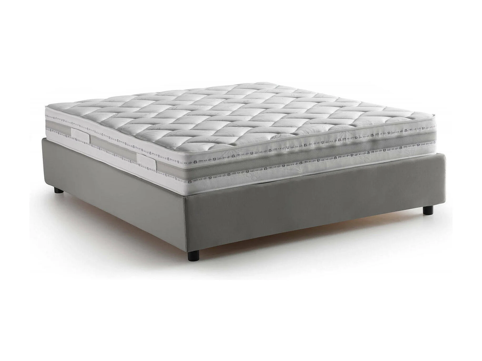 Doppelbett Adele, Bettkasten mit Stoffbezug, 100 % Made in Italy, Öffnung vorne, inklusive Matratze 140 x 190 cm, Grau