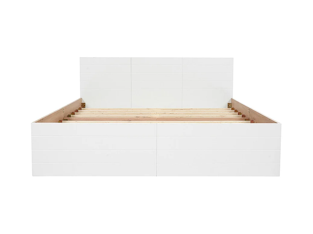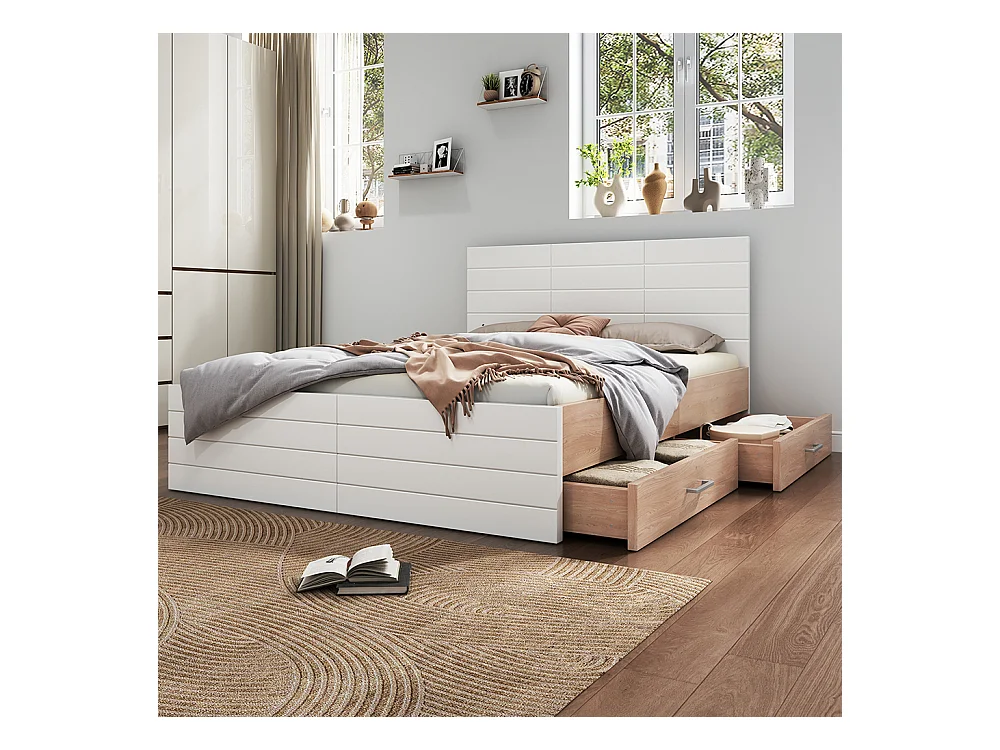 Doppelbett aus Holz 180 x 200 cm mit 2 Schubladen, Set Eiche + weiß.