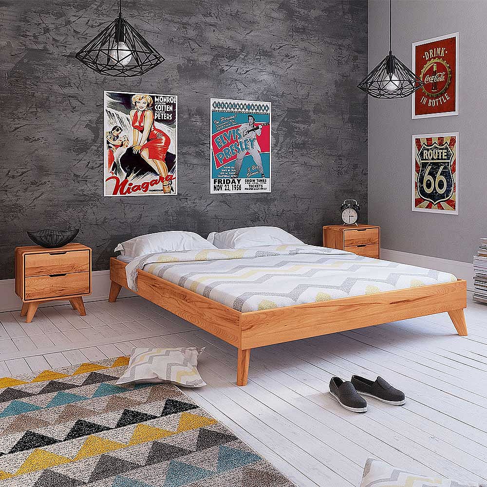 Doppelbett aus Kernbuche Massivholz Kopfteil (dreiteilig)