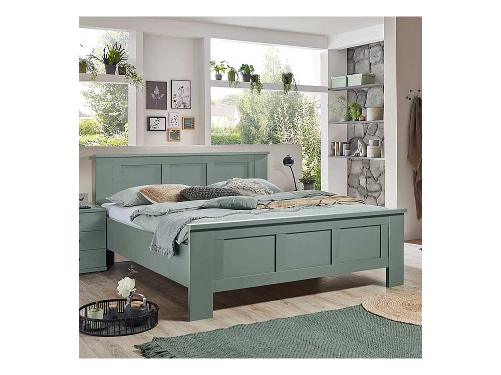 Doppelbett Überlänge in Graugrün modernen Landhausstil