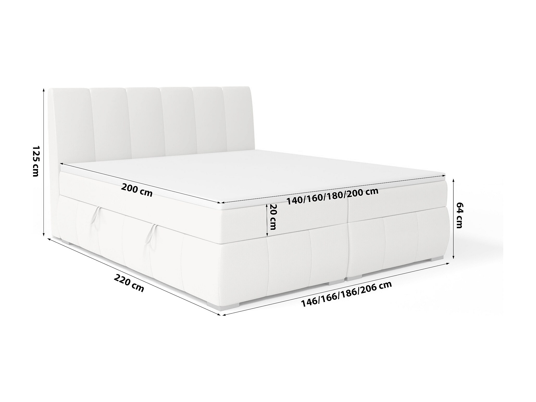 DOPPELBETT Bettkästen Topper Kaspian 140x200 cm (Weiß)