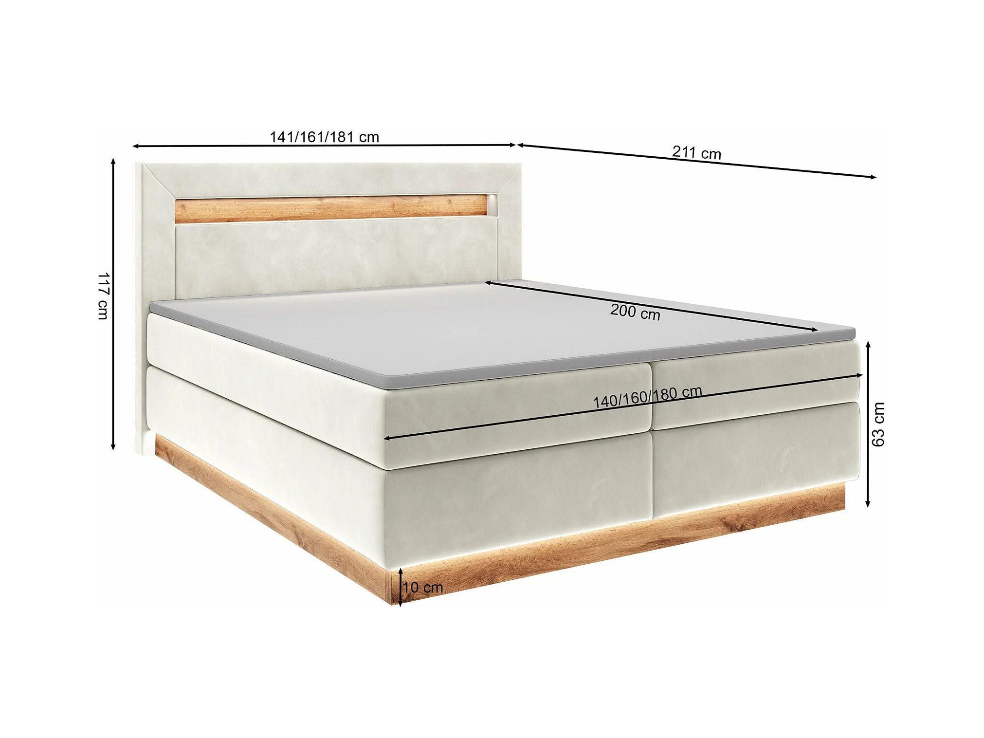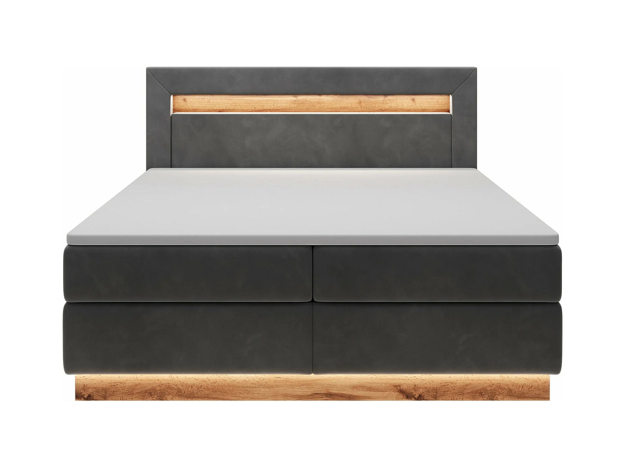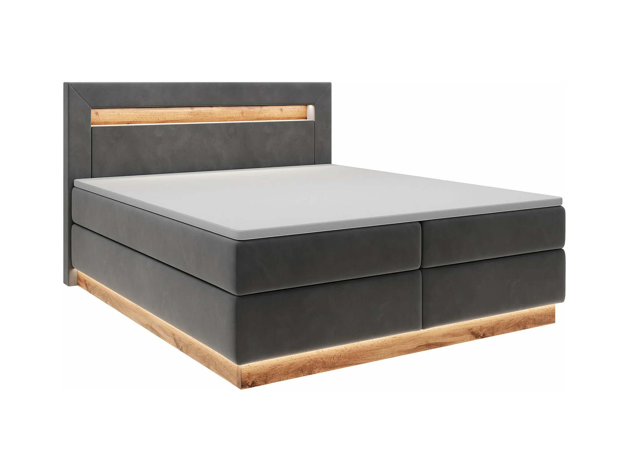 Doppelbett - Boxspringbett mit Topper - Beleuchtung und Samtbezug in Graphit - 140x200 cm - PROMIE