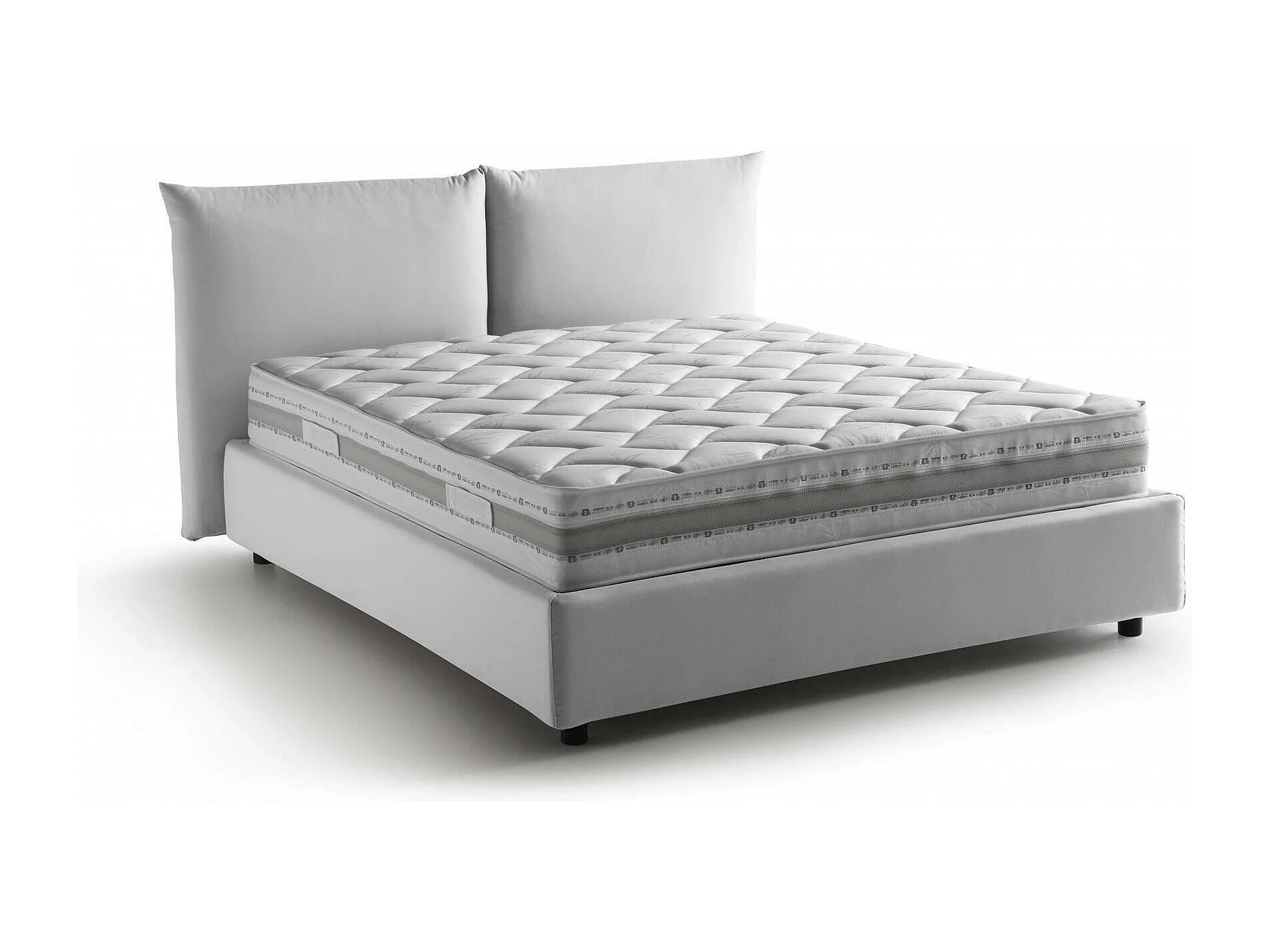 Doppelbett Cristel, Containerbett mit Stoffbespannung, 100% Made in Italy, Frontöffnung, inklusive Matratze 160x190 cm, Weiß